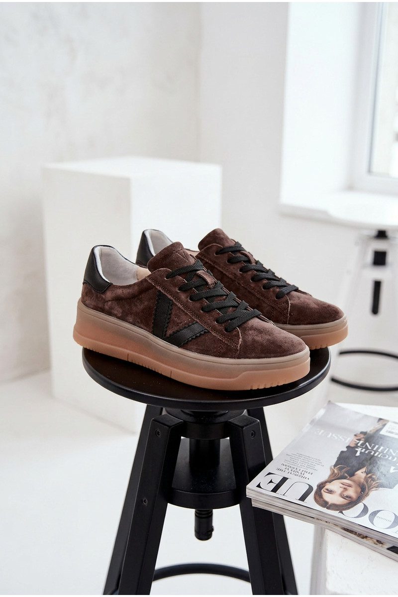 À modalo de tênis FemininoHabilitadoturalnego de camurçau com uma plataforma Vinceza 79597 cor marrom
