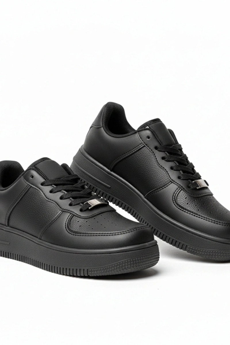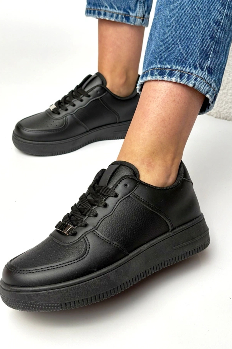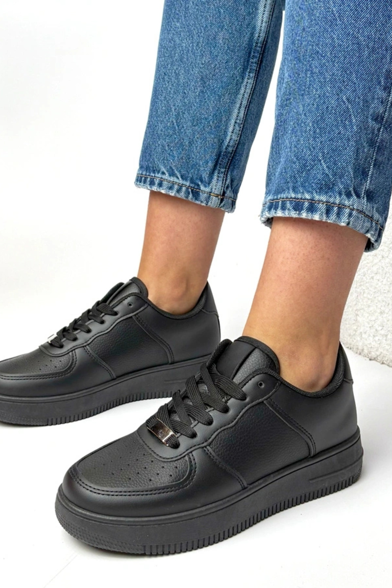 Tênis esportivos pretos com plataforma e detalhe brilhante Jeromi