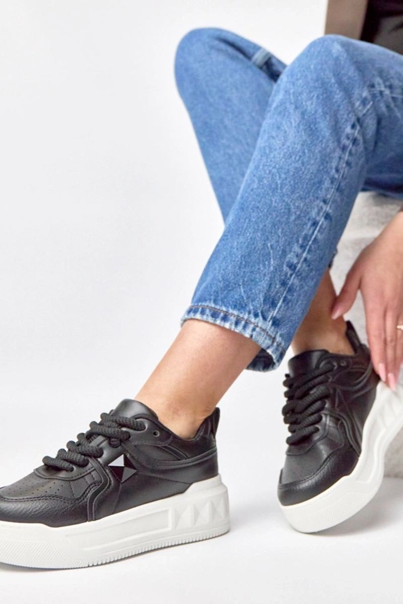 Tênis esportivos pretos com plataforma e detalhe brilhante Jeromi