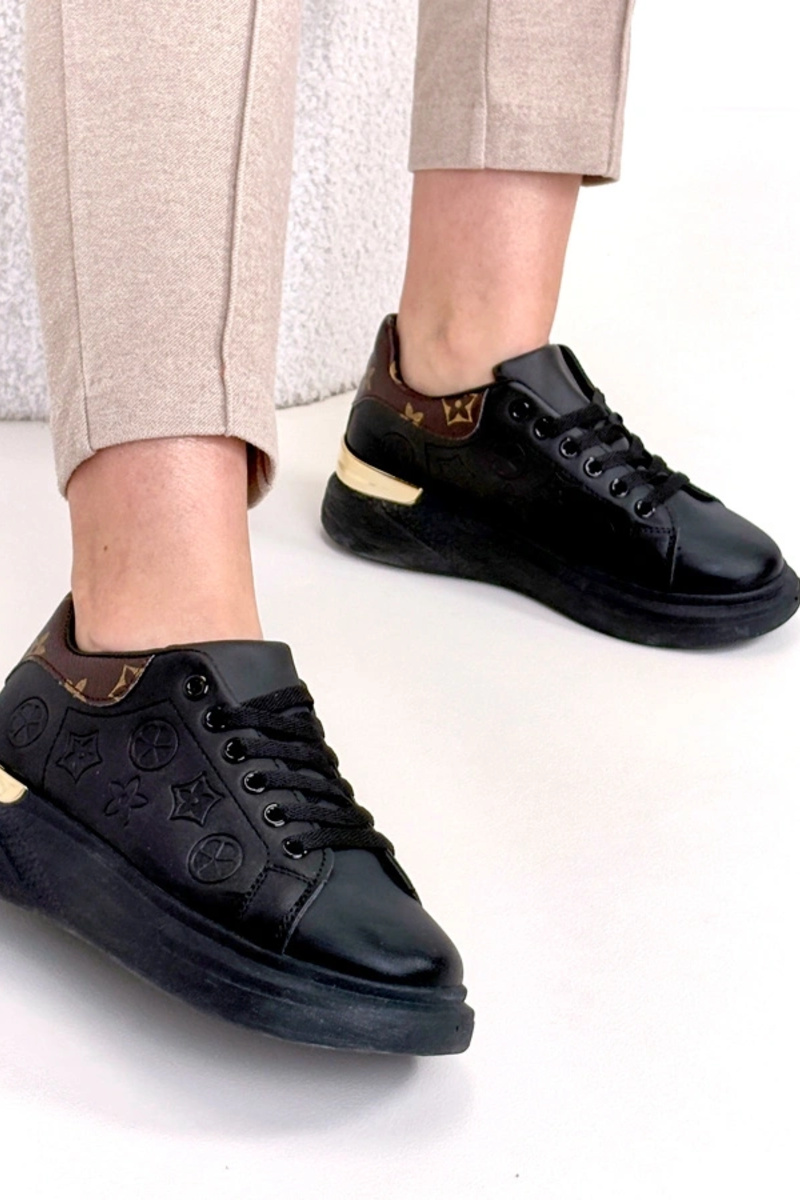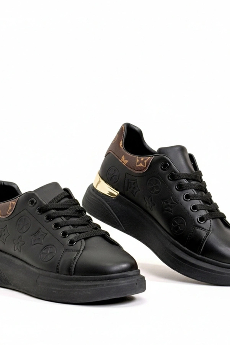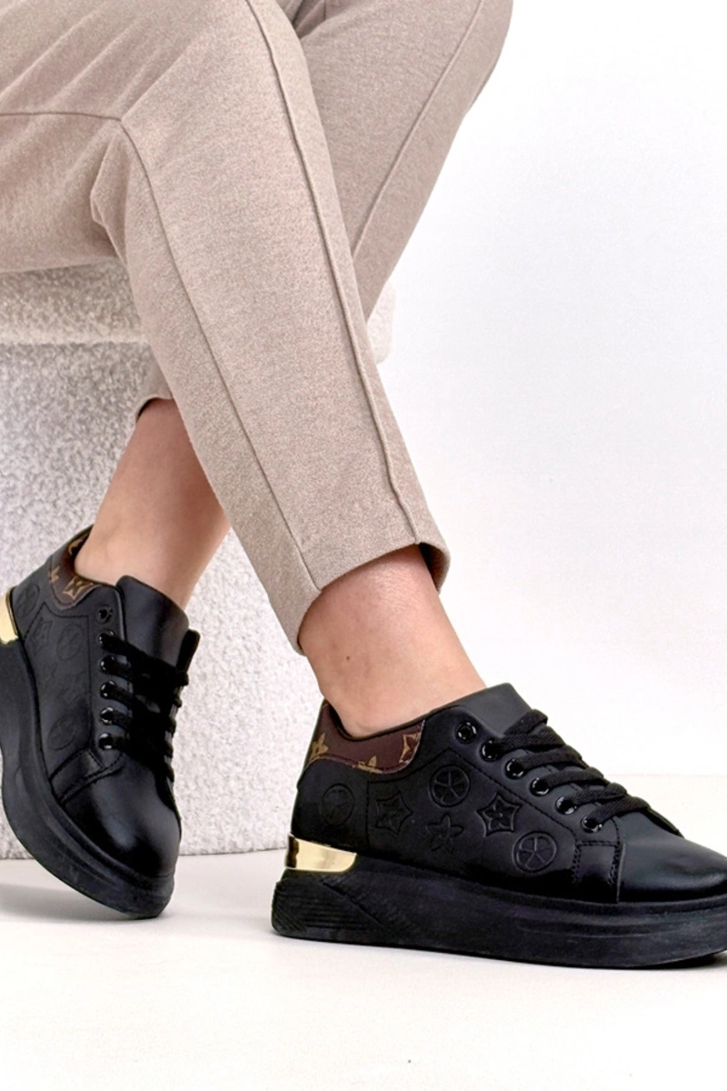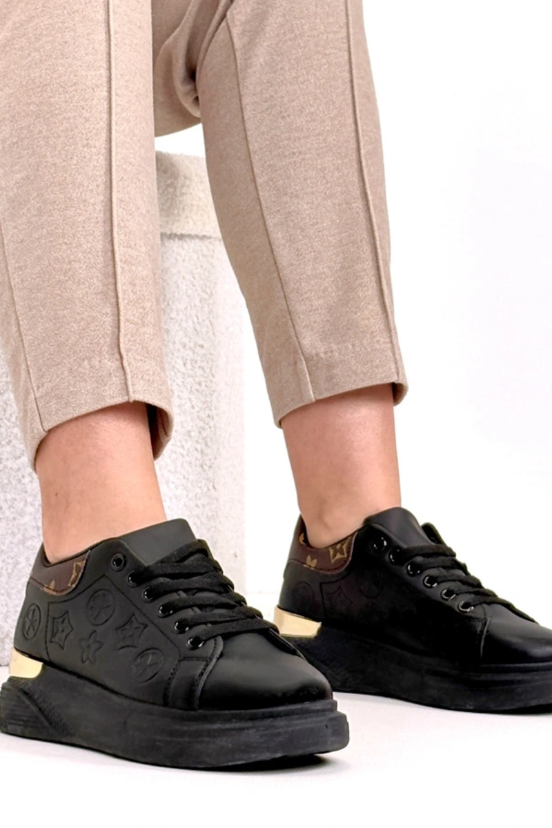 Tênis esportivos pretos com plataforma e detalhe brilhante Jeromi