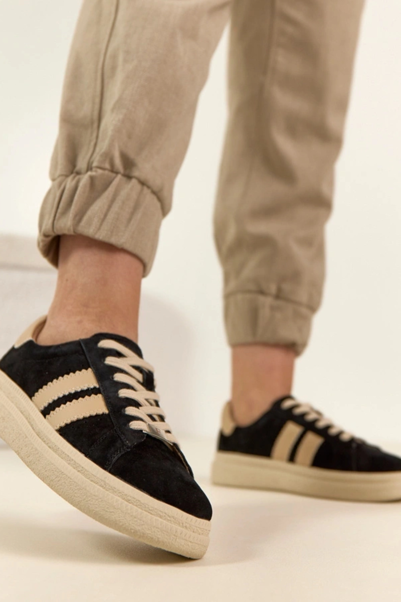Ténis de pele preta com plataforma Filippo