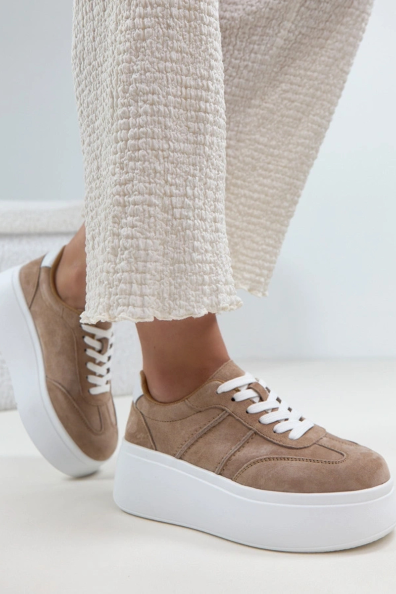 Sapatos de couro bege com plataforma Cambell