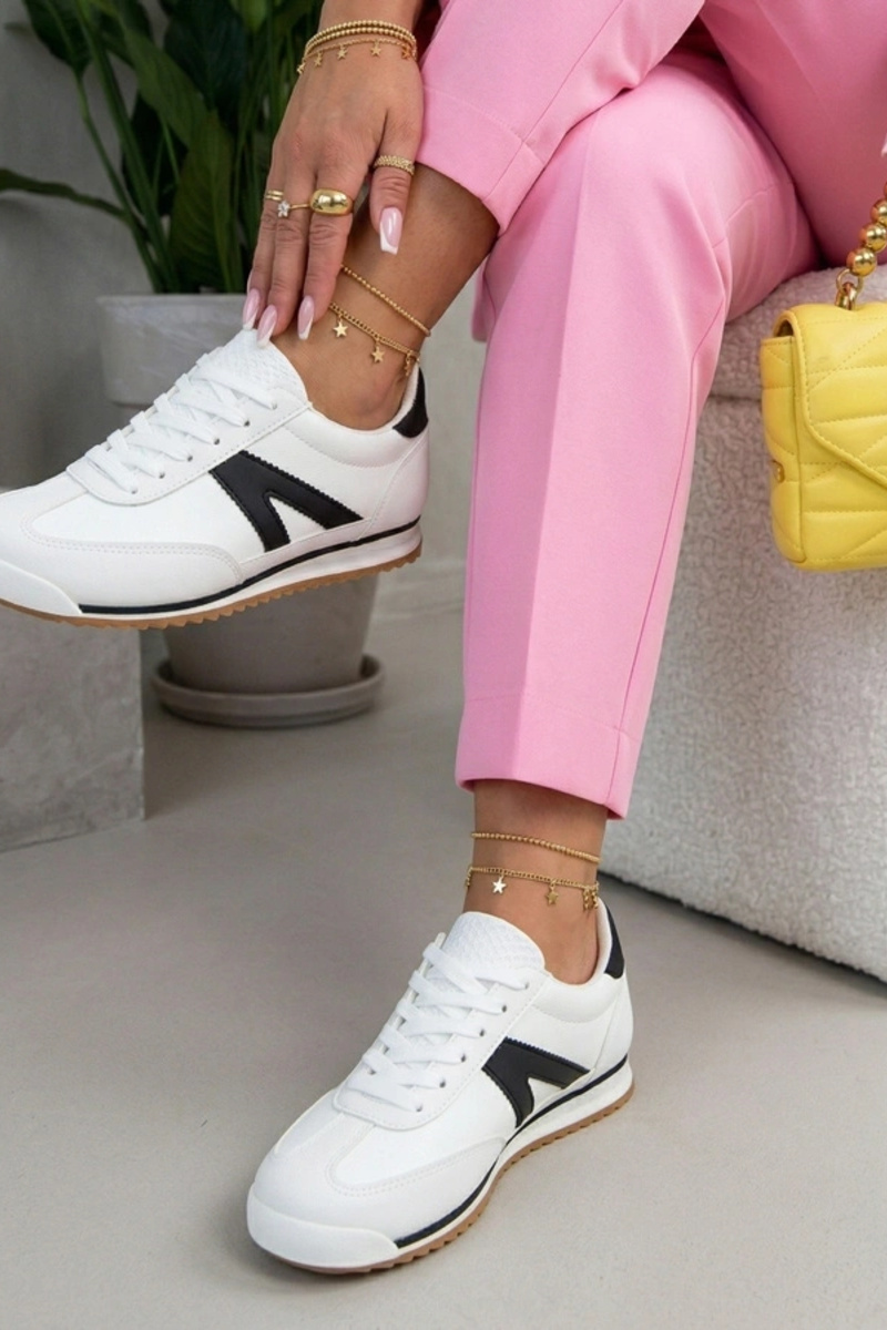Tênis esportivos brancos com detalhes pretos Saga