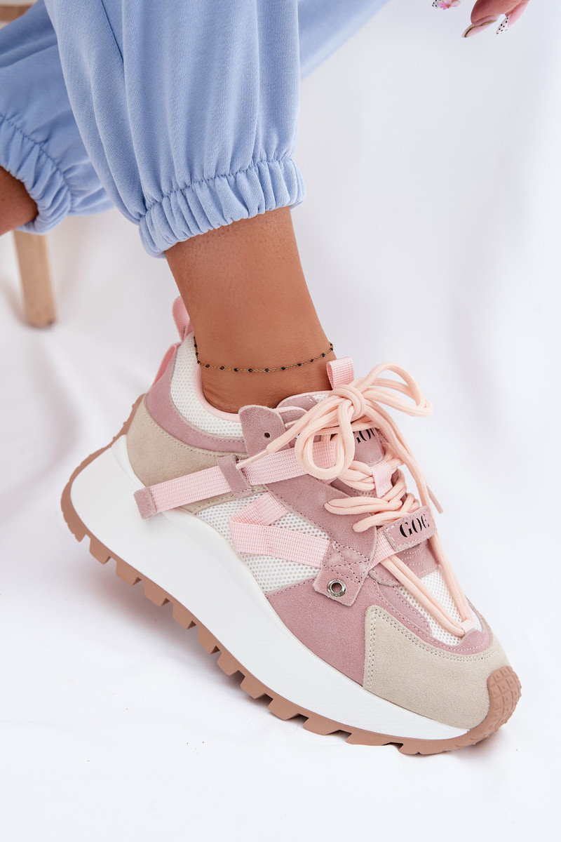 À modalo de tênis com uma plataformaHabilitadoturalnego de camurçau GOE TT2N4022 cor rosa