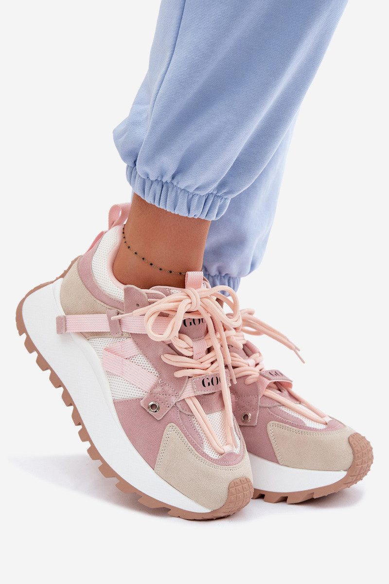 À modalo de tênis com uma plataformaHabilitadoturalnego de camurçau GOE TT2N4022 cor rosa