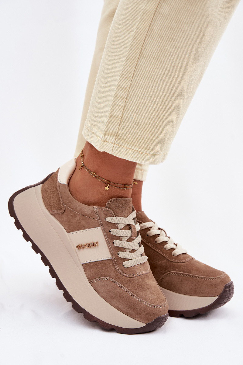 Ténis femininos com plataforma de camurça natural areia Rosinae
