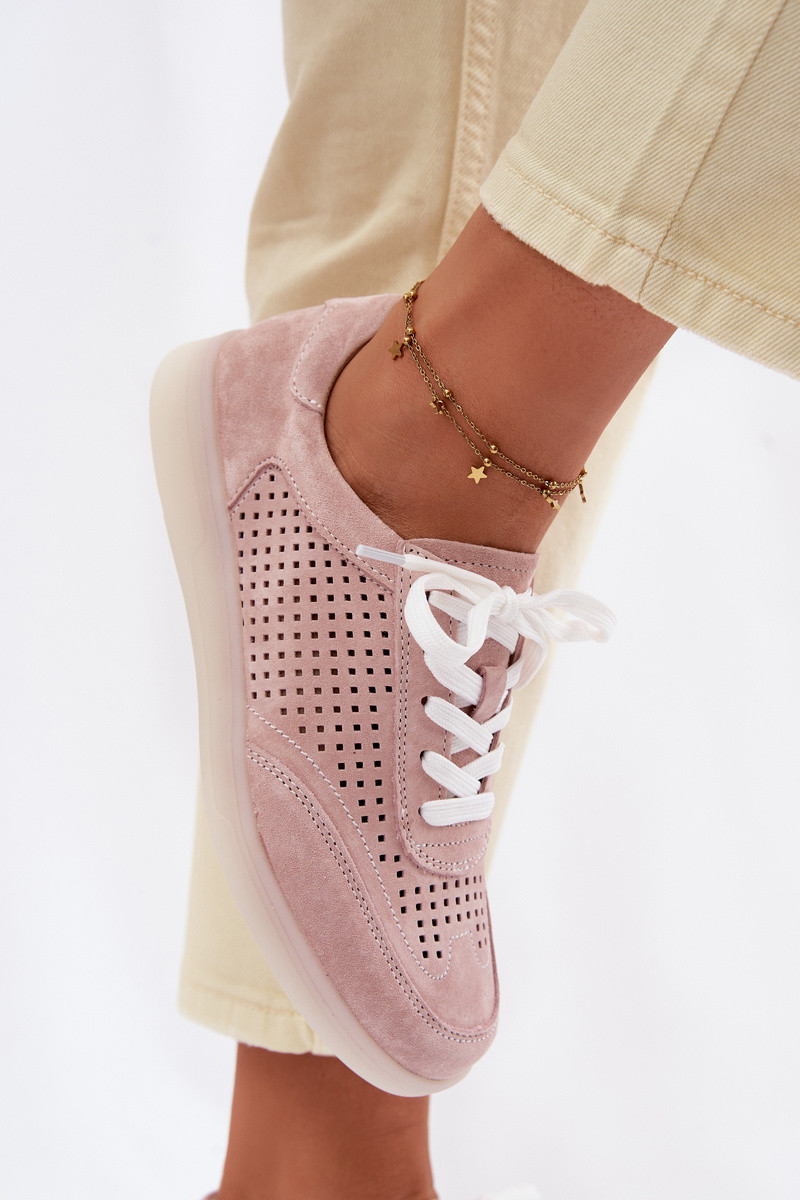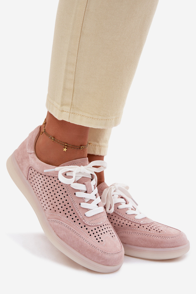 Pele de camurça À modalo de tênis Feminino com elementos abertos cor rosa Almora