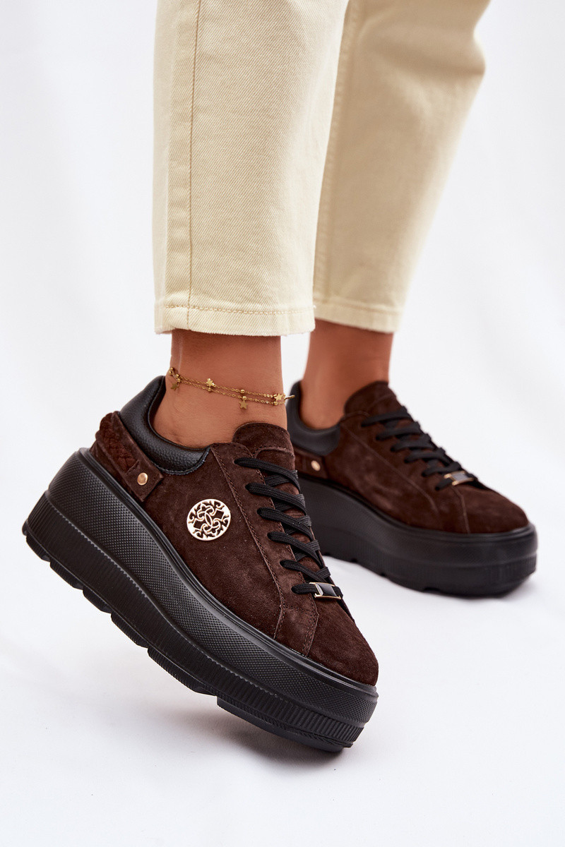 Pele de camurça À modalo de tênis Feminino com uma plataforma D&A LR61-7094 CzekoladoParae