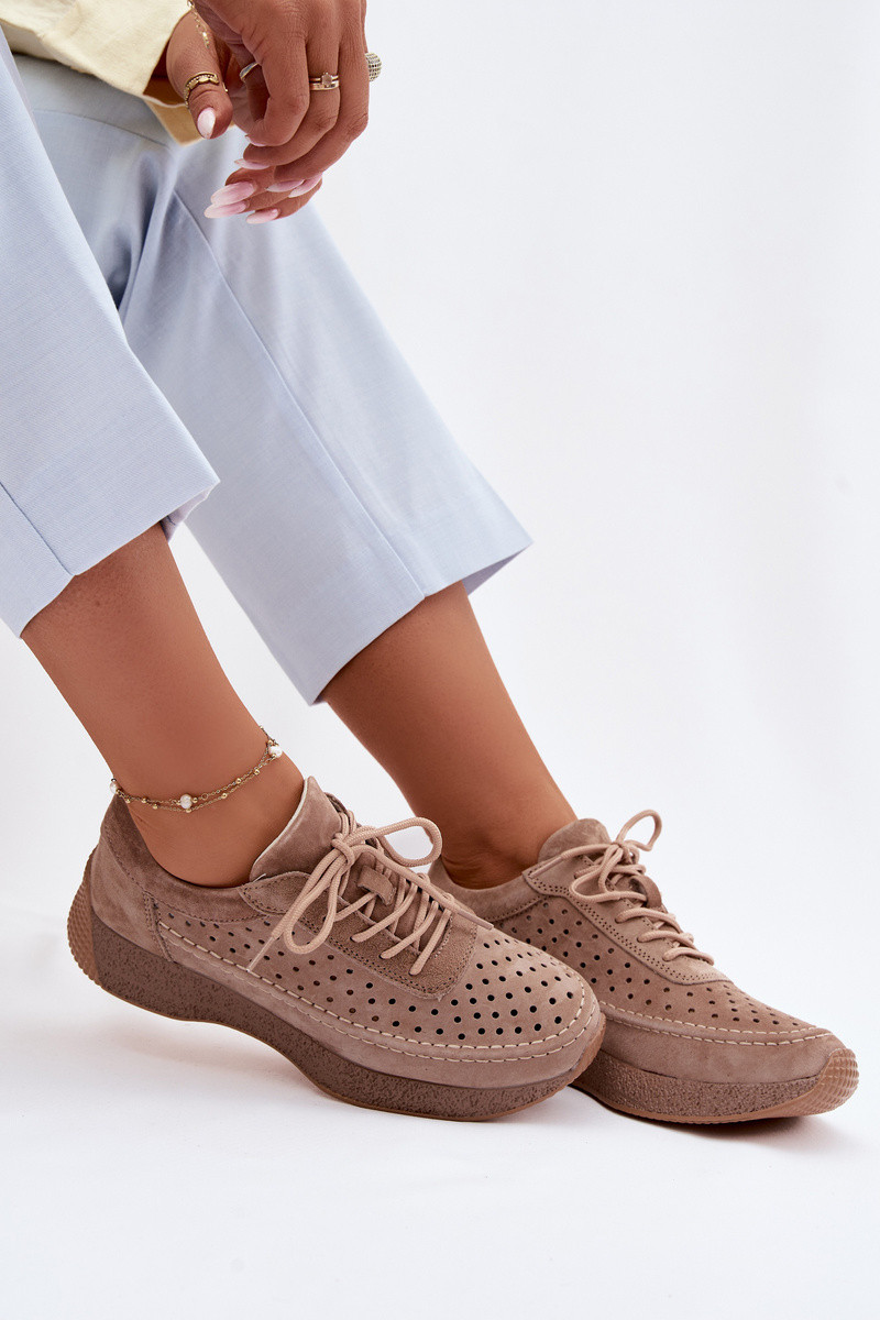 Sapatos femininos de couro tipo sneakers com elementos vazados Sergio Leone SP-013 cor marrom