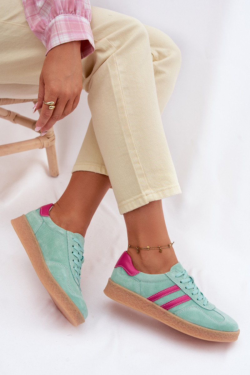 Sapatos de camurça em estilo esportivo femininos S.Barski LR61-7089 verde-menta