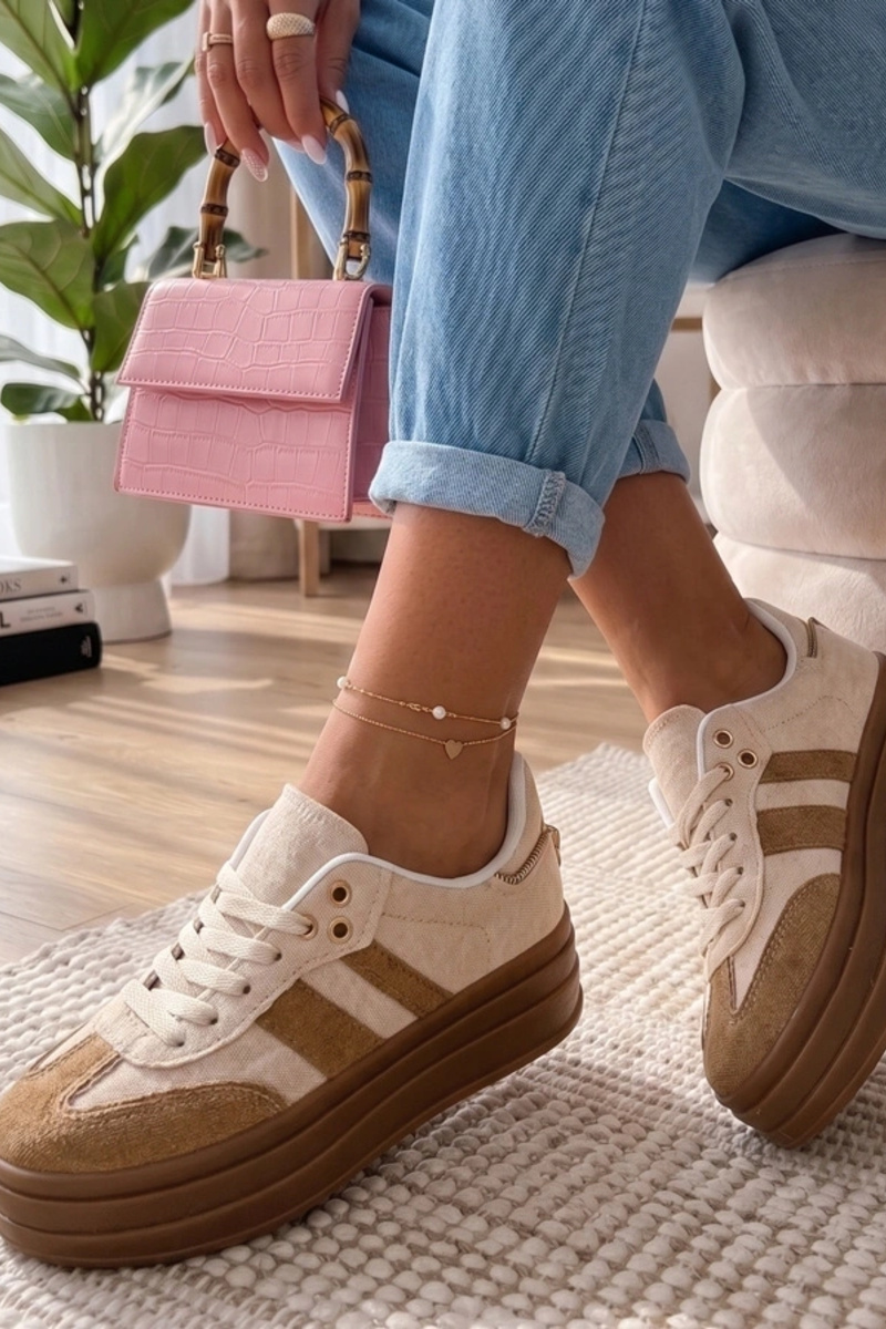 Tênis em tom areia com plataforma Arianne