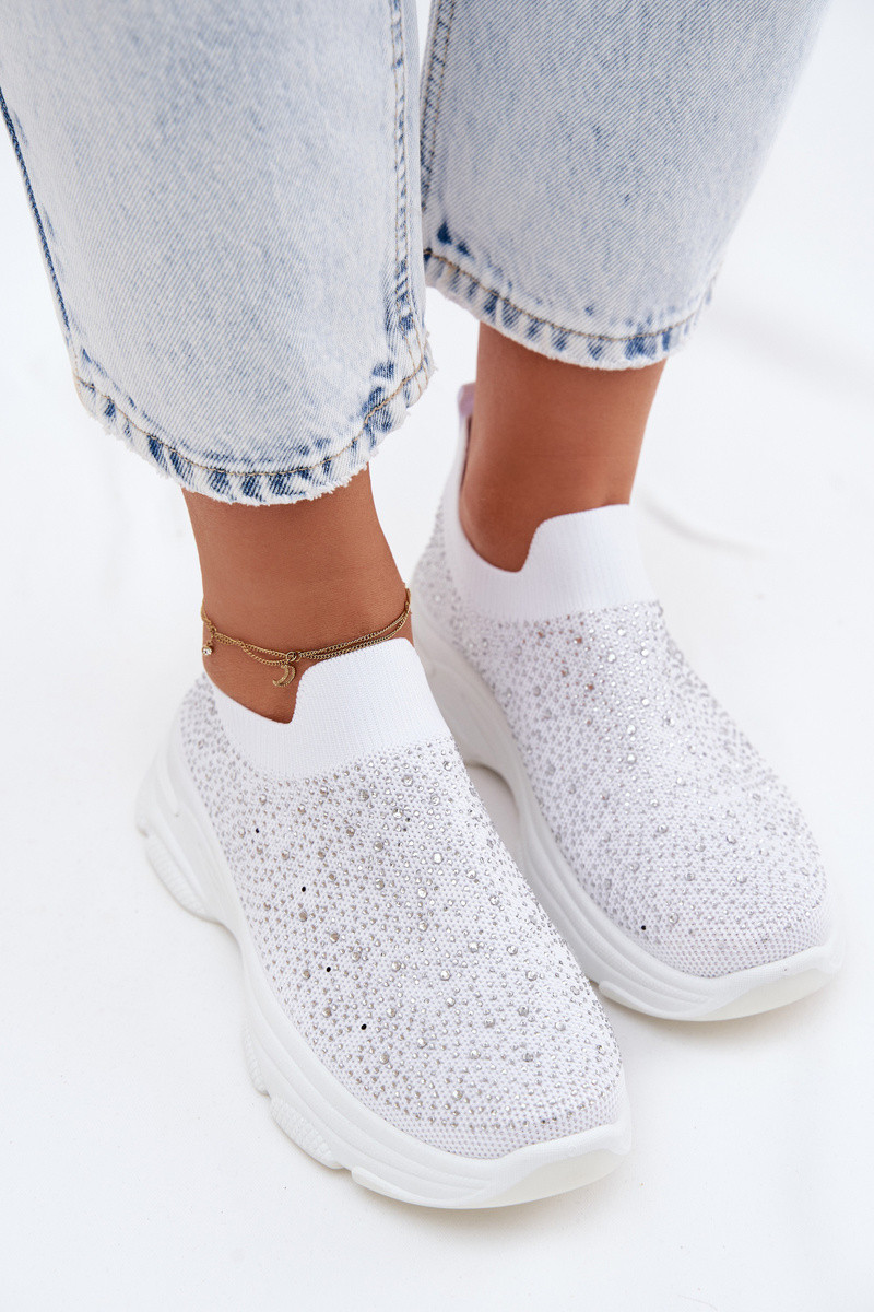 Ténis brancos femininos slip-on com decoração Melorae