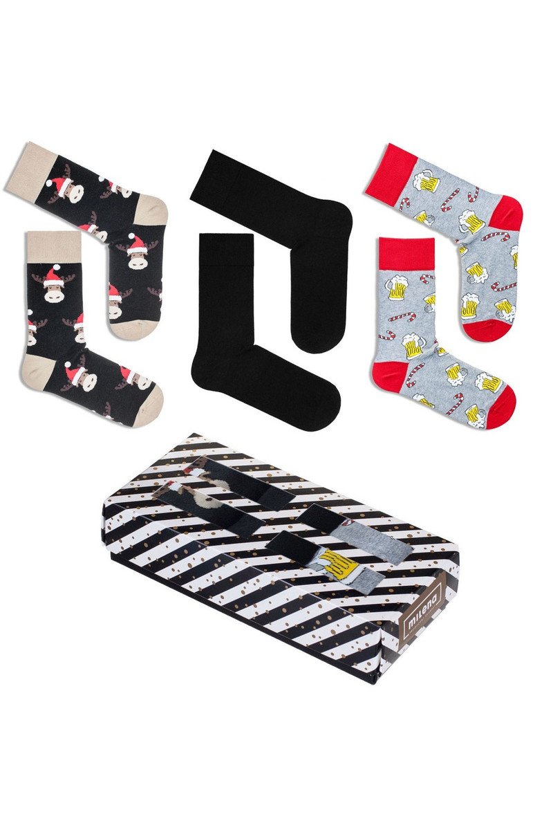 Conjunto de meias de Natal masculinas em caixa, 3 pares