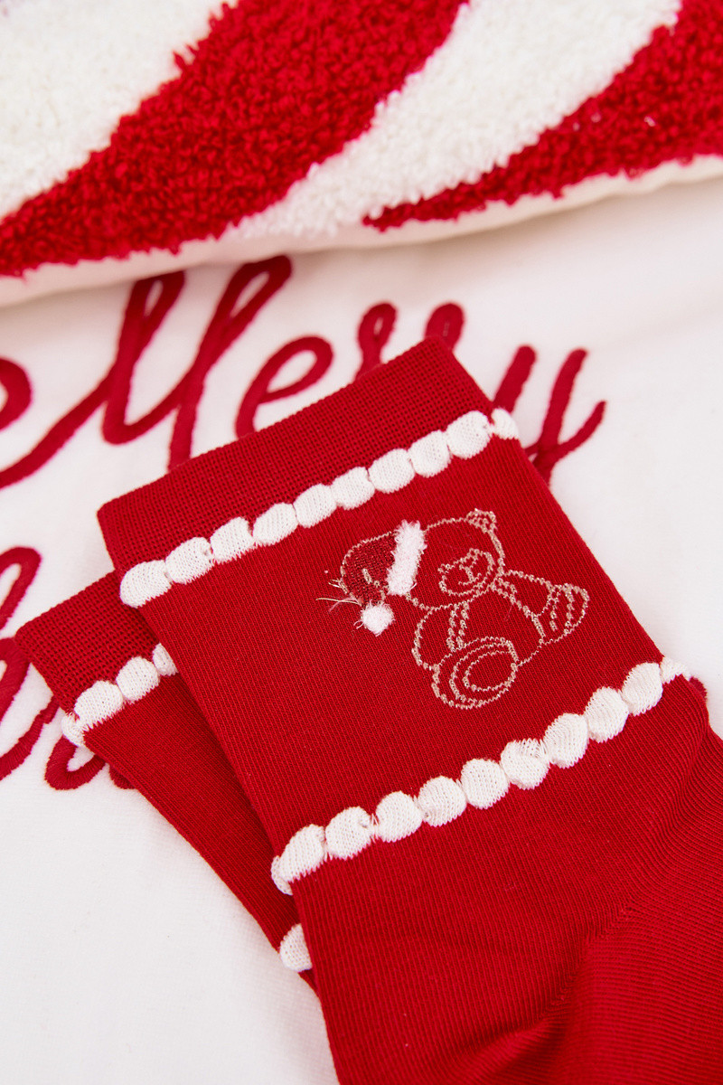 Meias Feminino Habilitadotal ursinhos de pelúcia Habilitado capa Papai Noela cor vermelha