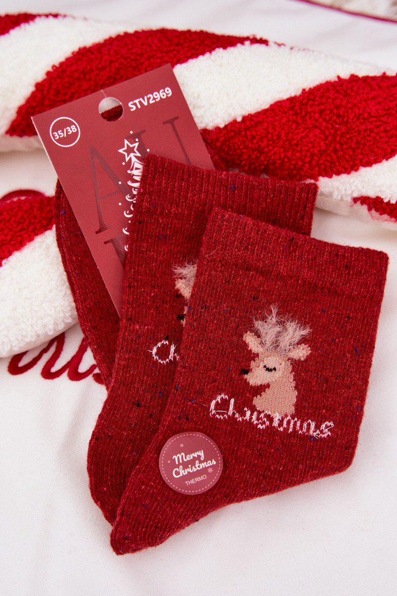 Meias Feminino Habilitadotal com veado EMełna Alpaca cor vermelha