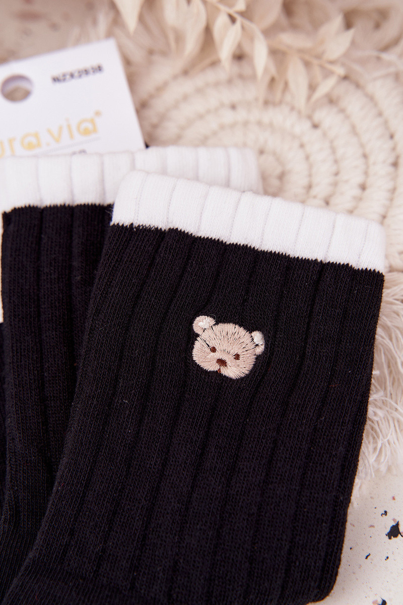 Meias de algodão femininas com ursinhos turistas, pretas