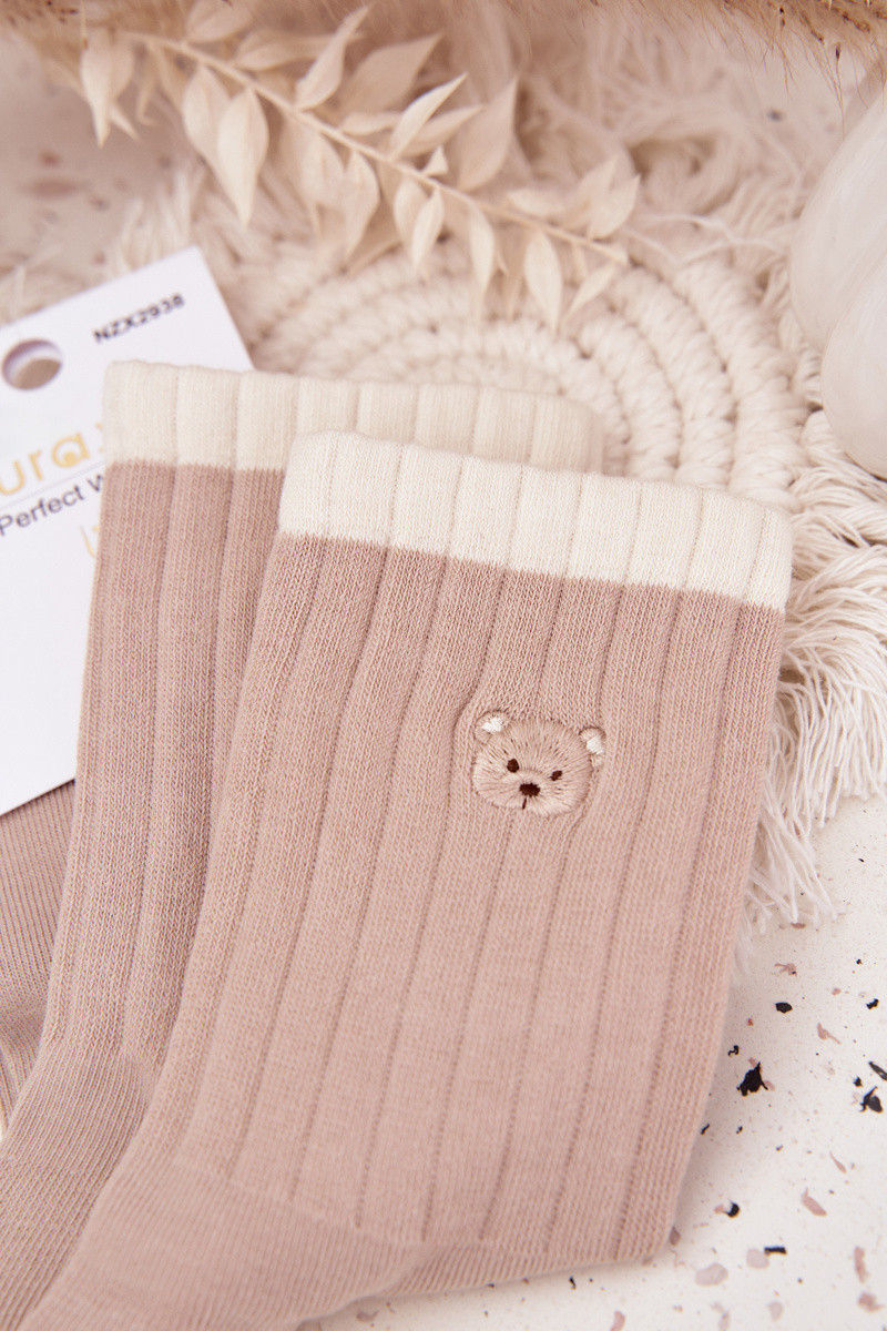 Meias de algodão femininas com ursinhos turistas, cor de areia