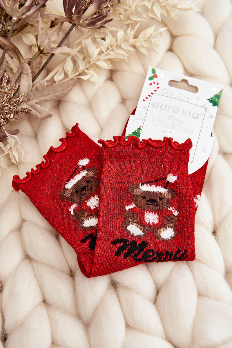 Feminino com brilho Habilitadotal Skarpety Com Urso cor vermelha