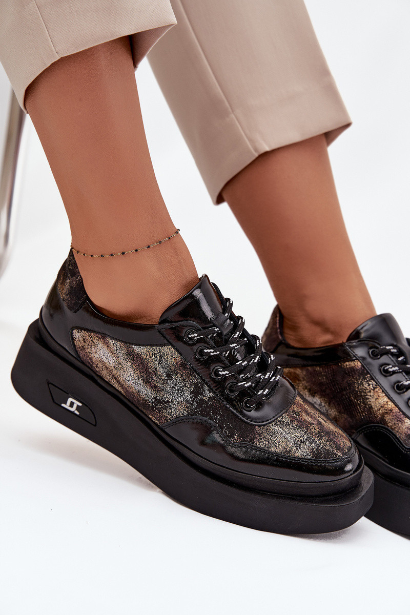 Pele Amarrar os sapatos Feminino com uma plataforma Artiker 57C2042 Preto e-cor dourada