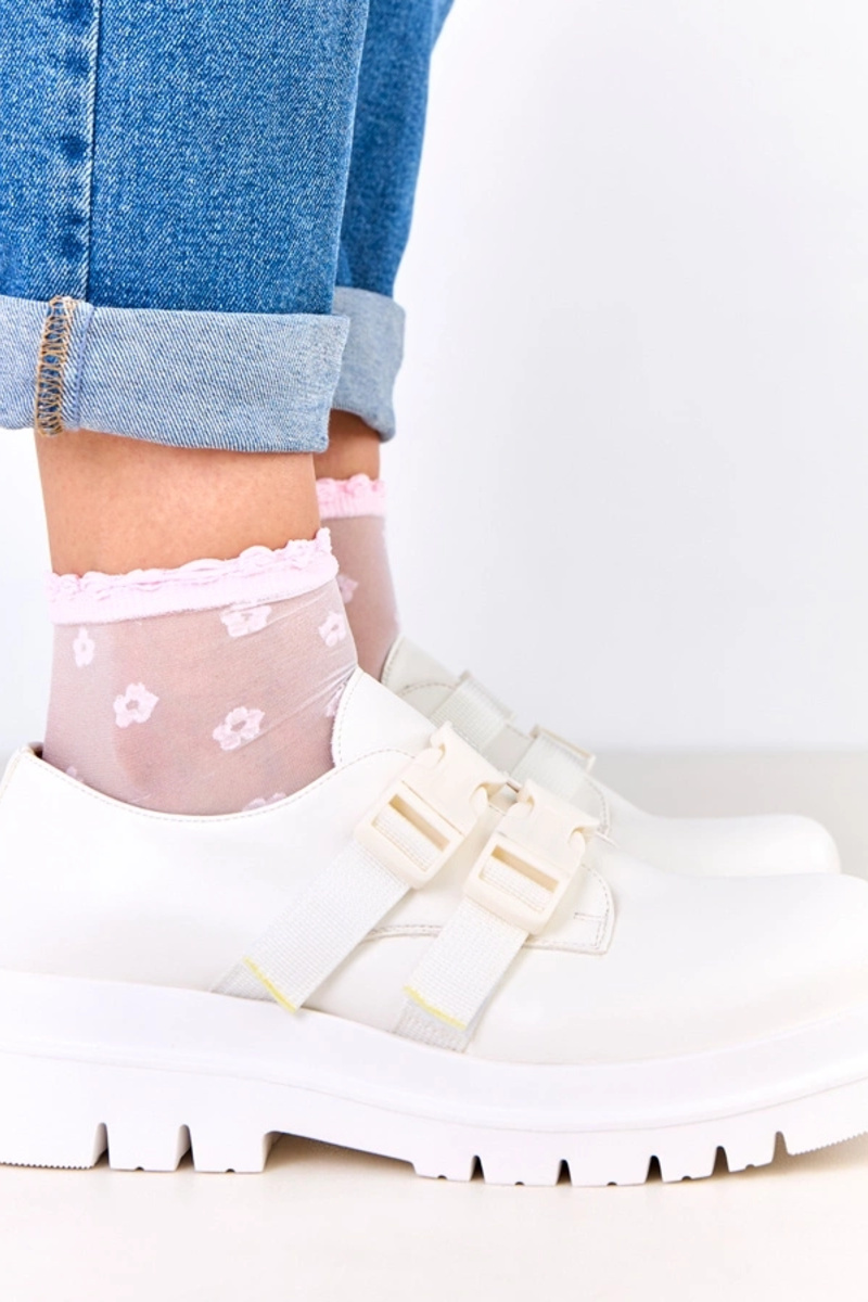 Calçado desportivo feminino com atacadores aquecidos com plataforma na cor branca Biaola