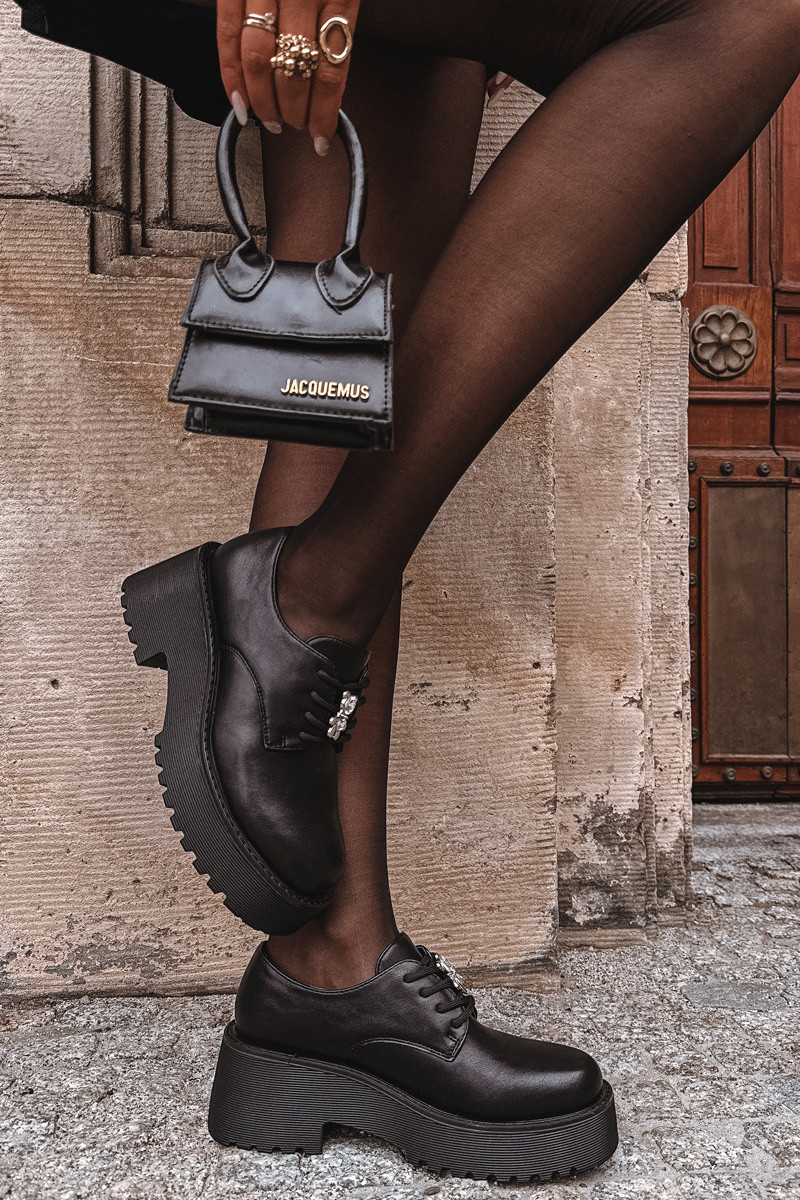 Botas femininas com fivela de couro sintético, cor preta Laurea
