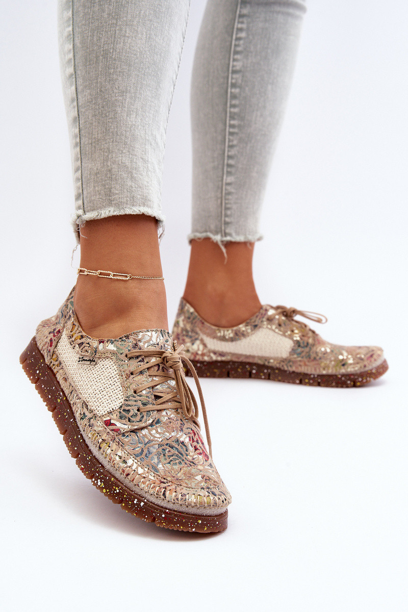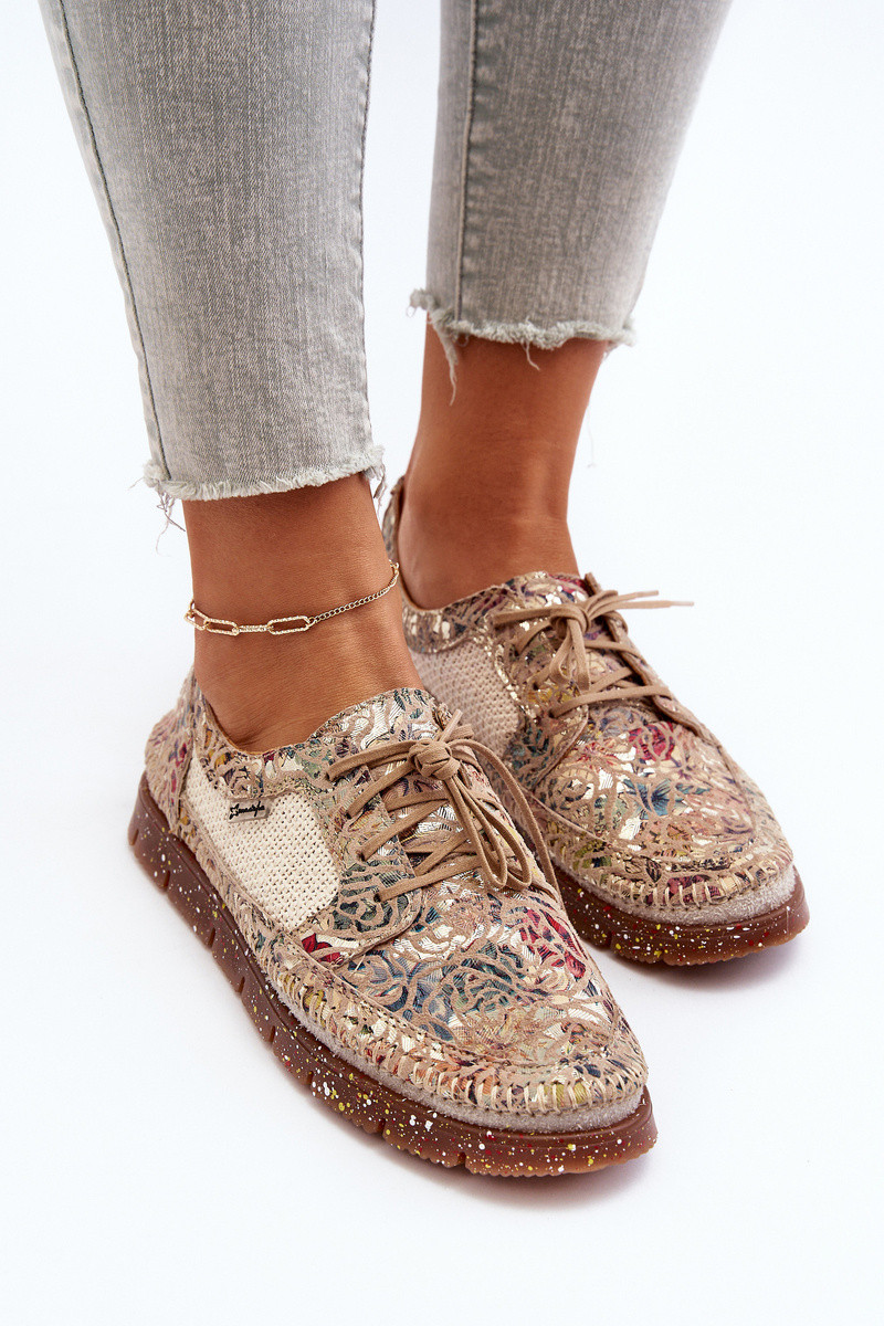 Sapatos femininos estampados 06347-04 na cor areia
