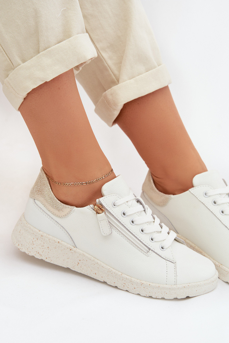 Pele sapato Feminino com zíperes Branco-cor dourada Dorothea
