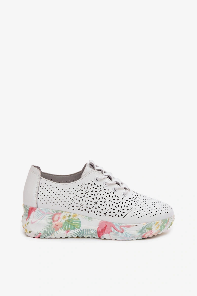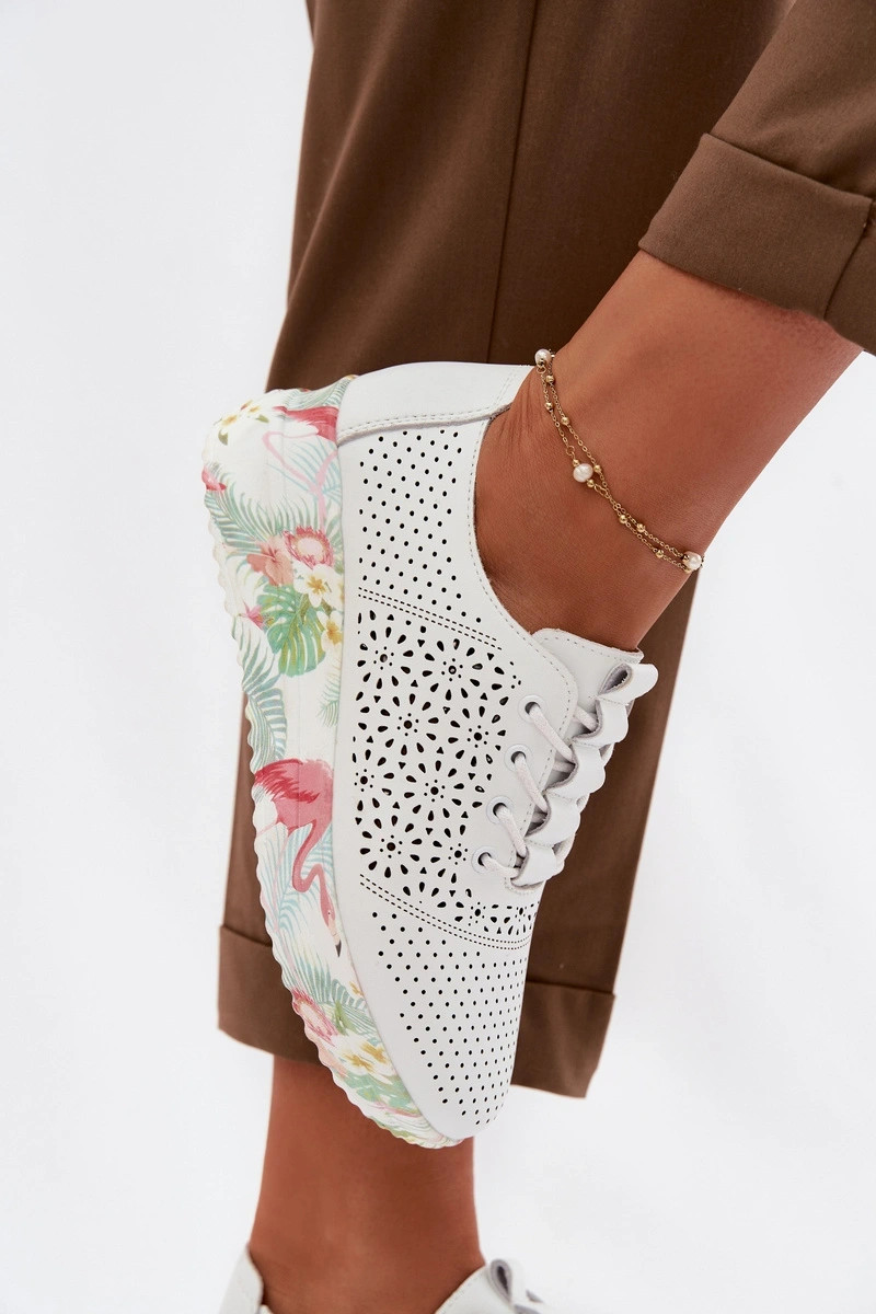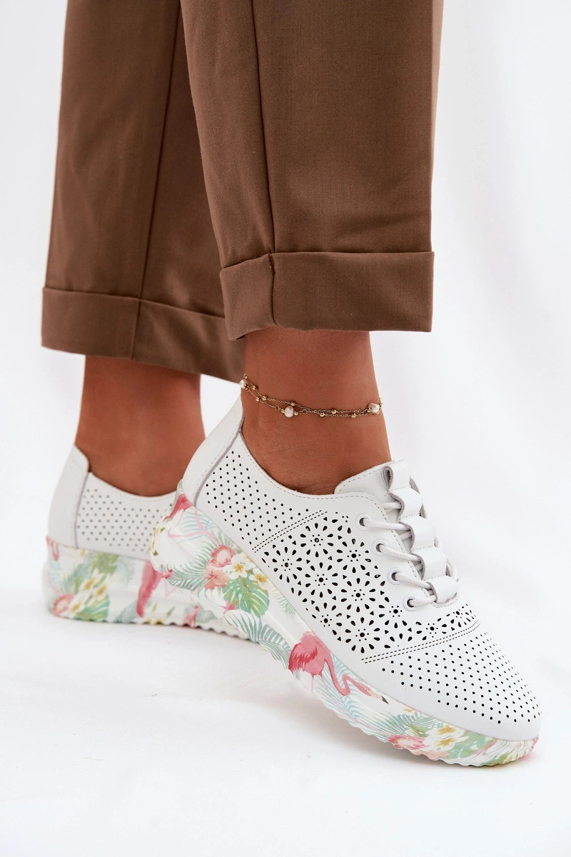 Sapatos femininos de couro com detalhes de perfuração Telina cor branca