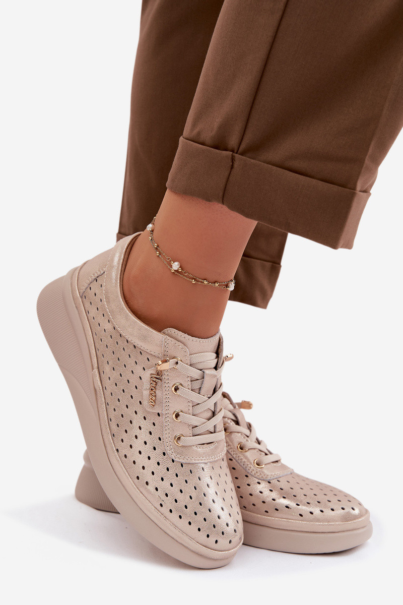 Sapatos de couro em renda Vinceza 79603 cor dourada