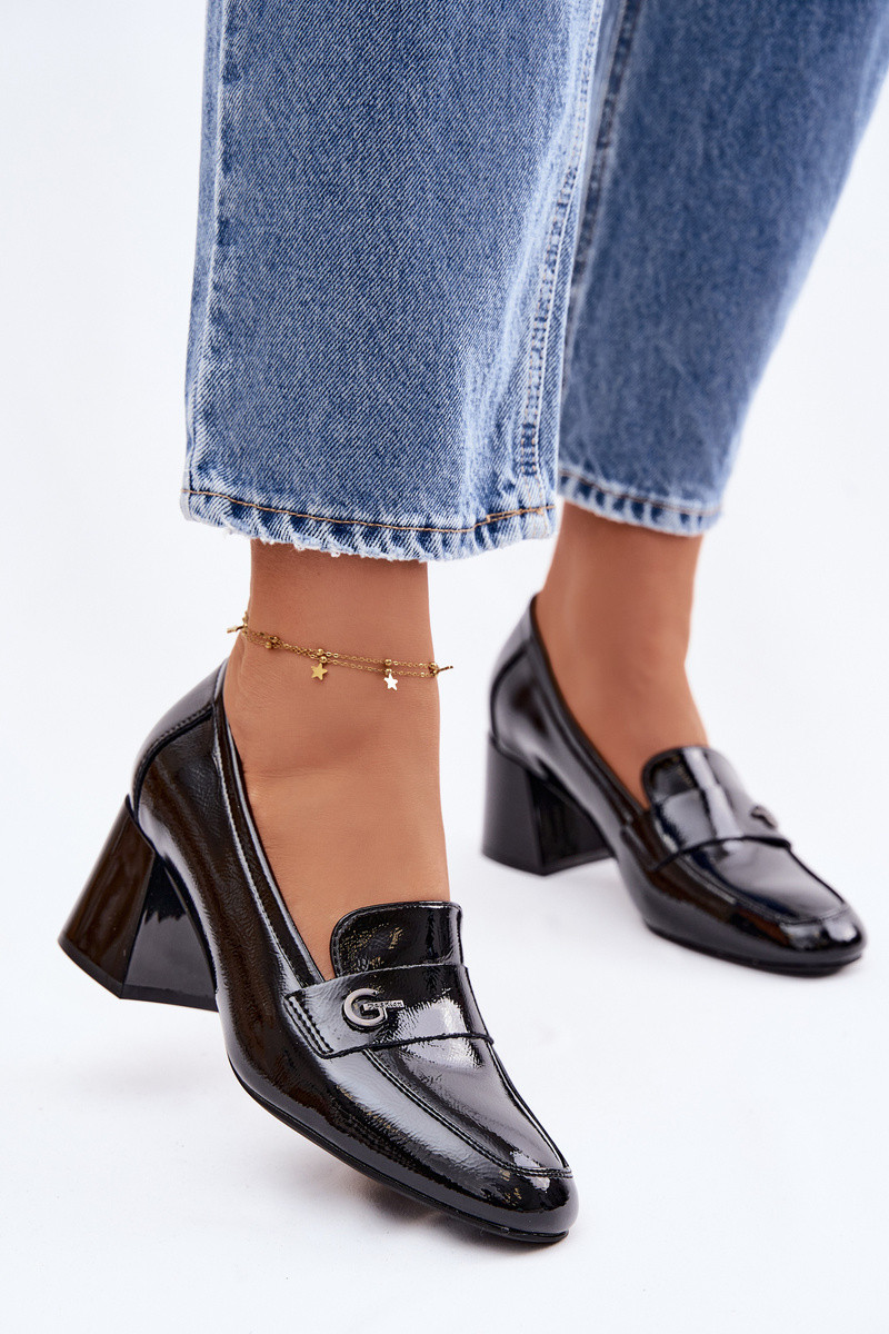 Botins lacados em pele genuína Feminino com salto Vinceza 18119 cor preta