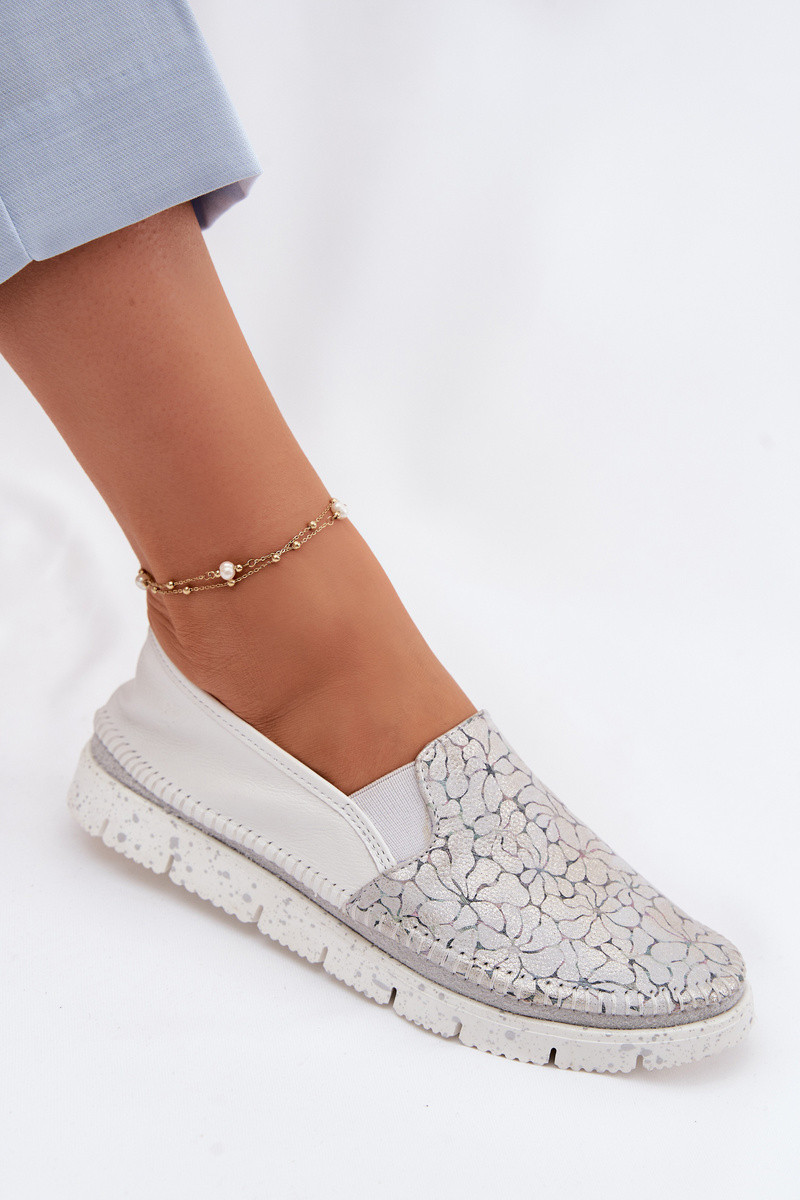 Botas femininas de couro Tem que serciejka 03512-70 Branco-cor prata