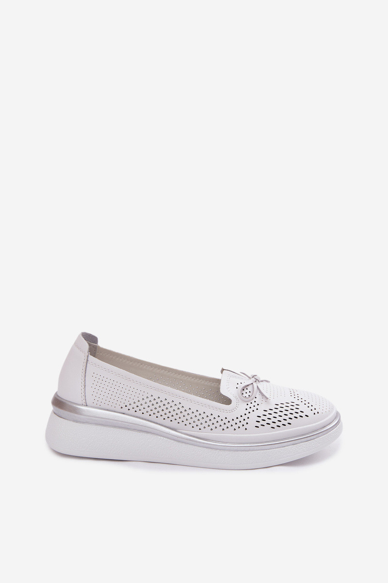 Pele com elementos abertos sapato com uma plataforma S.Barski LR61-7043 cor branca