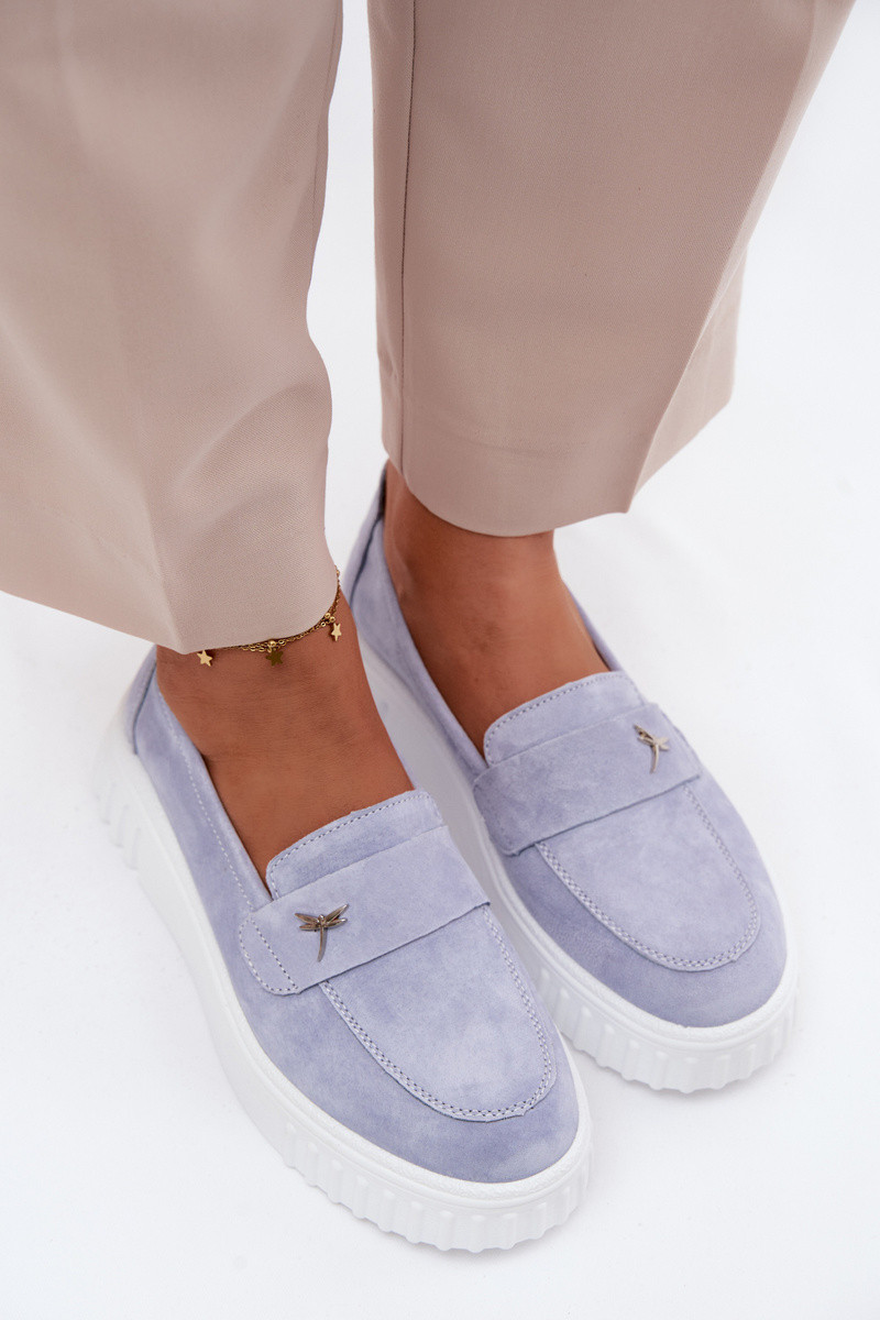 Pele de camurça sapato Feminino com uma plataforma Um modelo atraente Vinceza 93218 cor azul