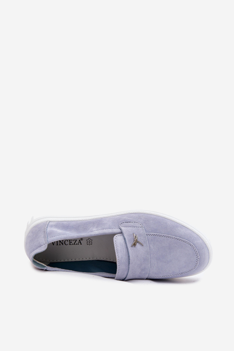 Sapatos de mulher em camurça com plataforma, slip-on Vinceza 93218 em azul