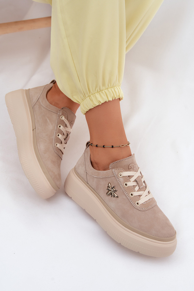 Sapatos de camurça sintética com plataforma Vinceza 41523 cor areia
