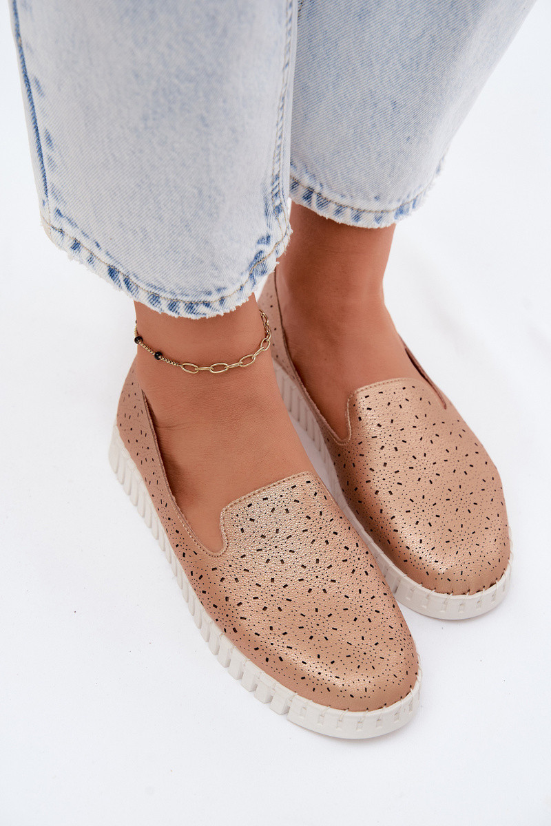 Sapatos slip-on com elementos perfurados na cor champanhe Salty