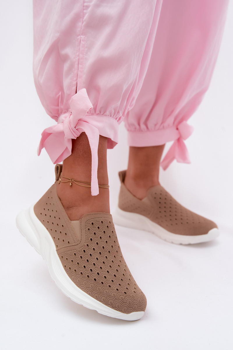 Um modelo atraente com elementos abertos sapato FemininoImitacji de camurçau bege Geressa