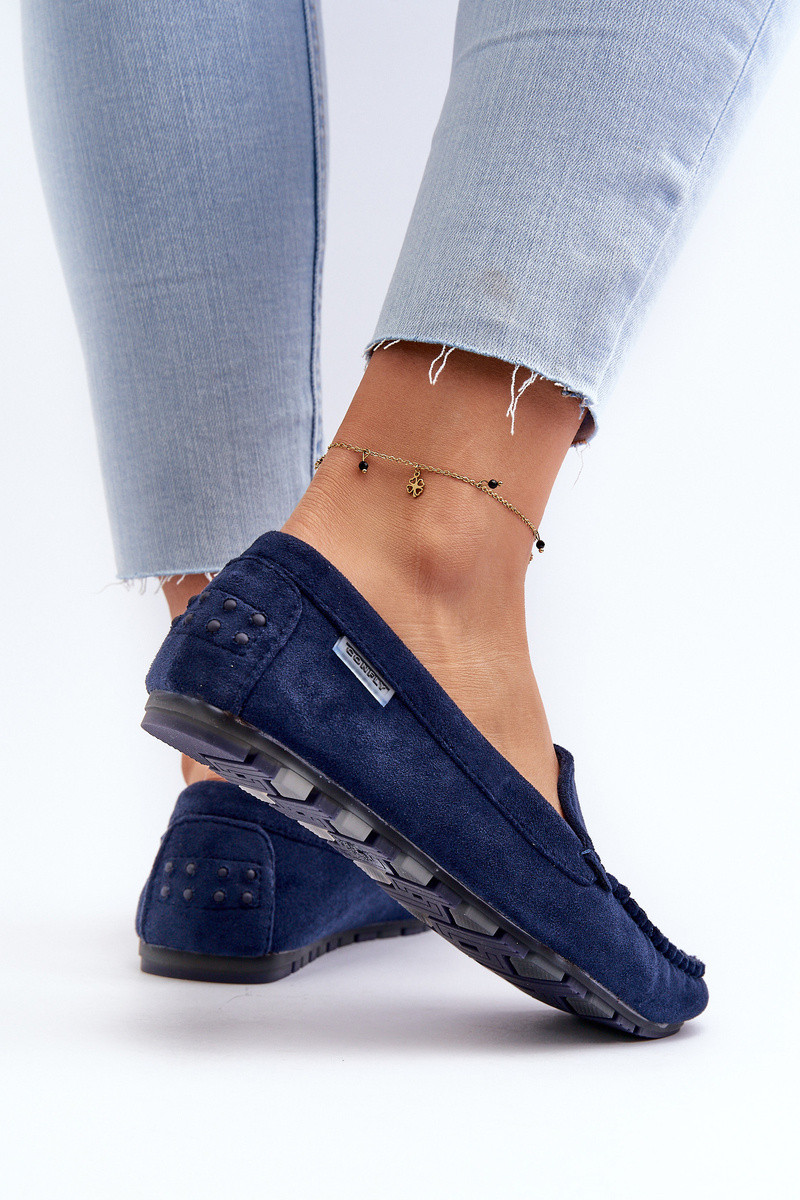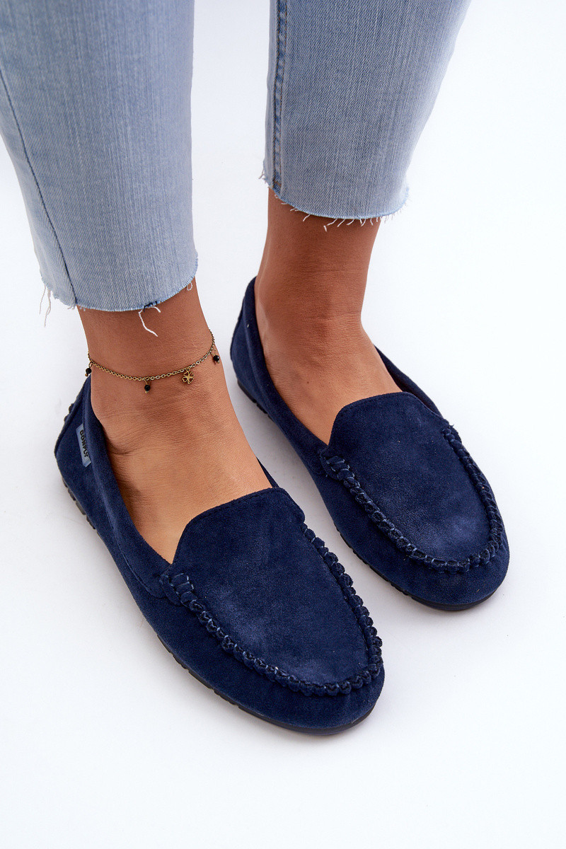 Mocassins femininos em camurça sintética, azul-escuro Amrutia