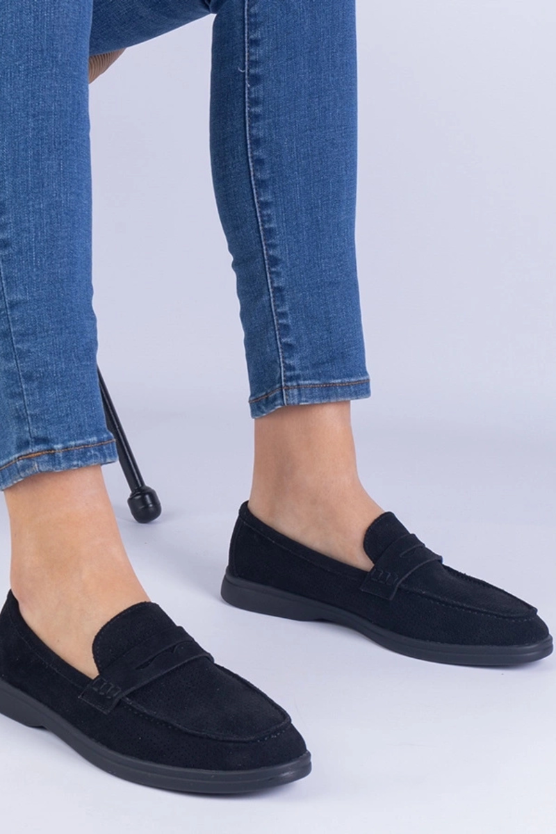 Zazoo 20164 mocassins femininos de couro natural, cor preta