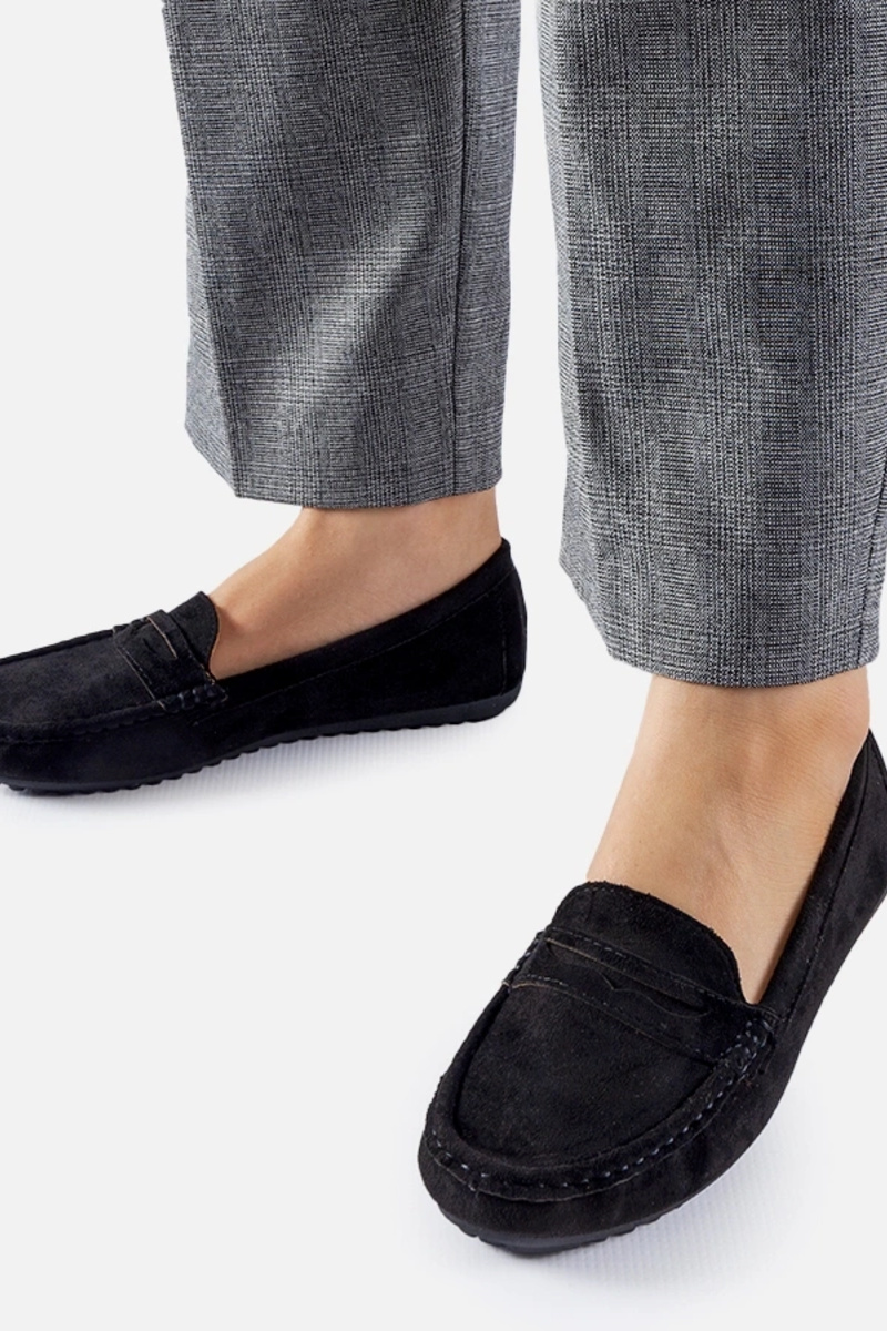 Zazoo 20164 mocassins femininos de couro natural, cor preta