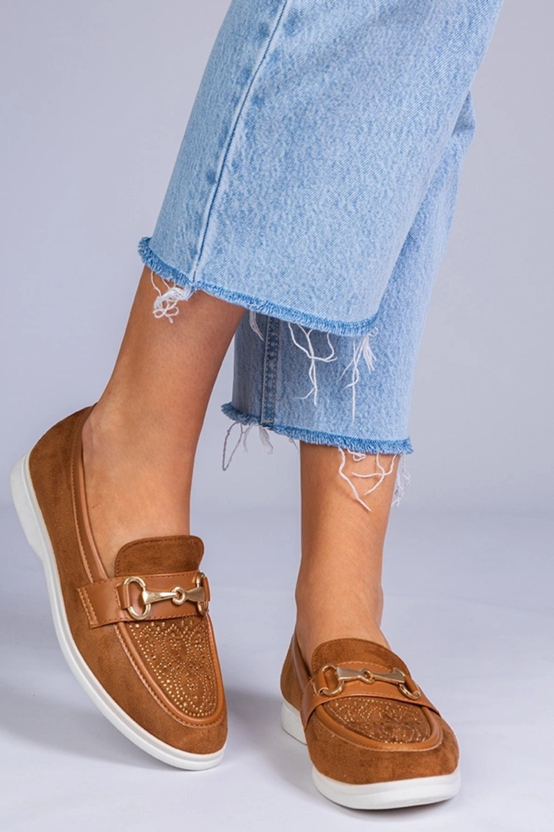 Mocassins marrons de couro sintético com enfeite, "Kalenda"