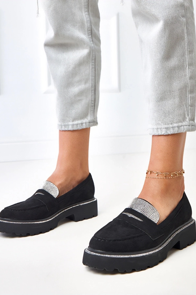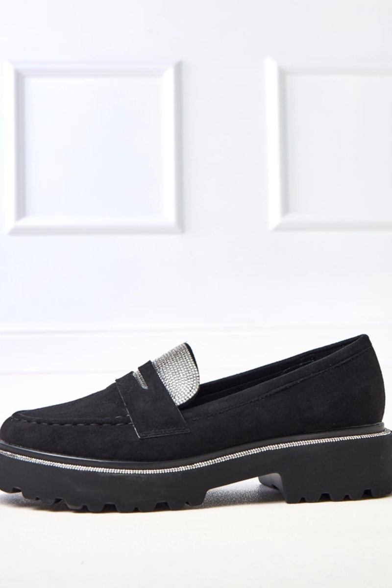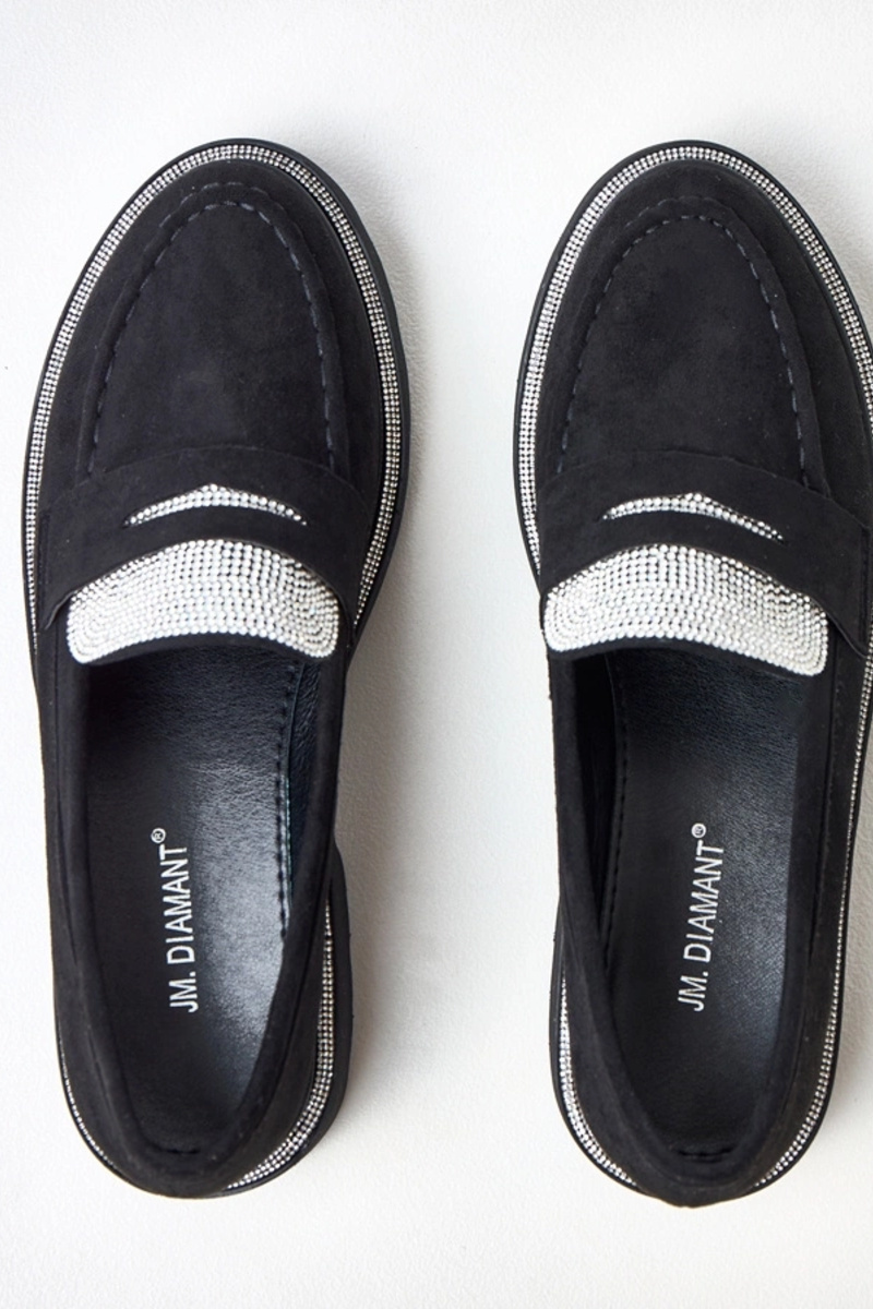 Mocassins pretos de camurça sintética decorados com zircônias Kloren