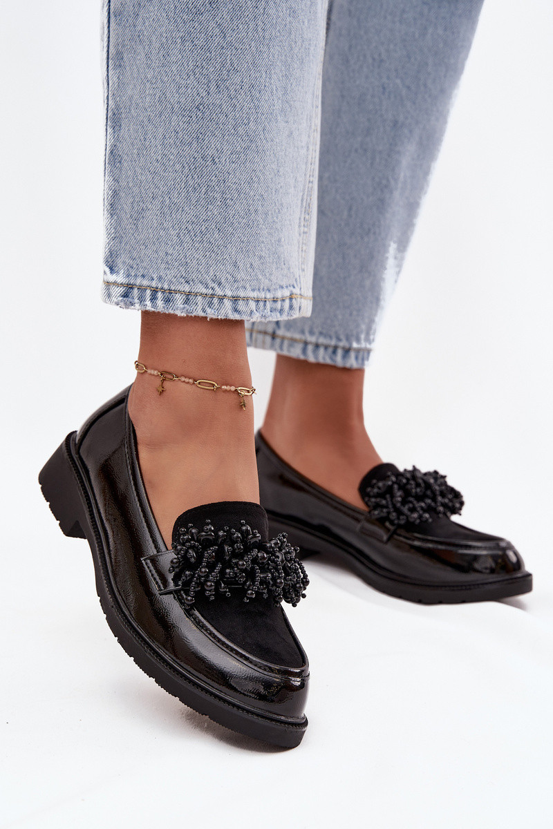 Mocassins femininos com efeito envernizado S.Barski HY52-369B em preto