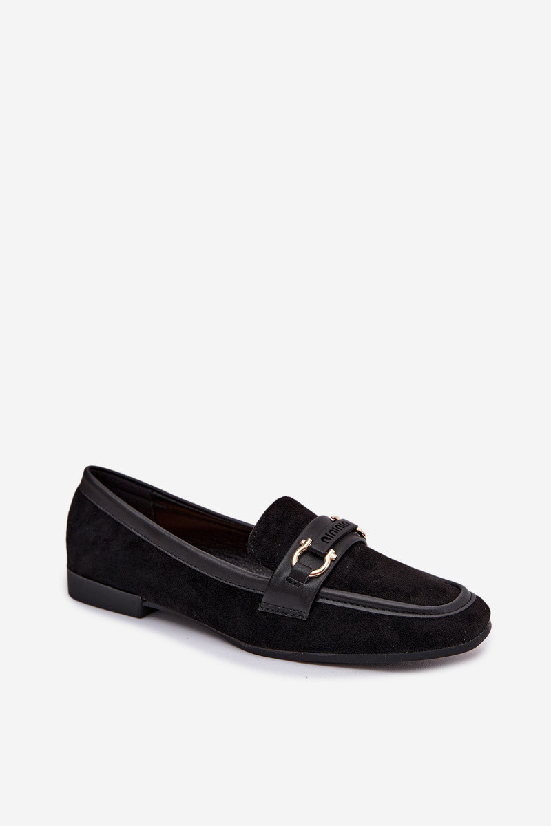 Mocassins femininos com detalhes decorativos, na cor preta Evelora