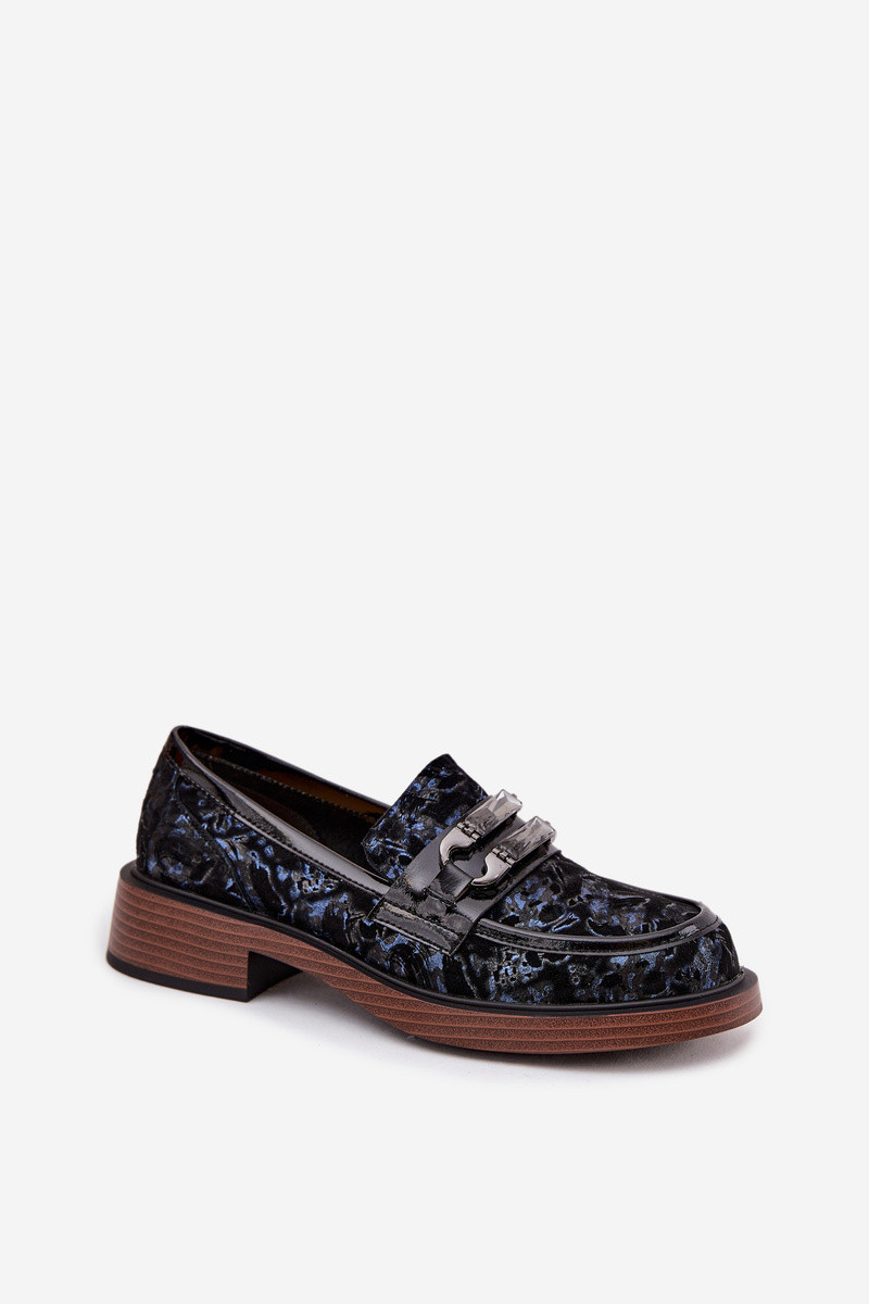 Mocassins femininos de camurça sintética com detalhes requintados D&A MR52-178 pretos