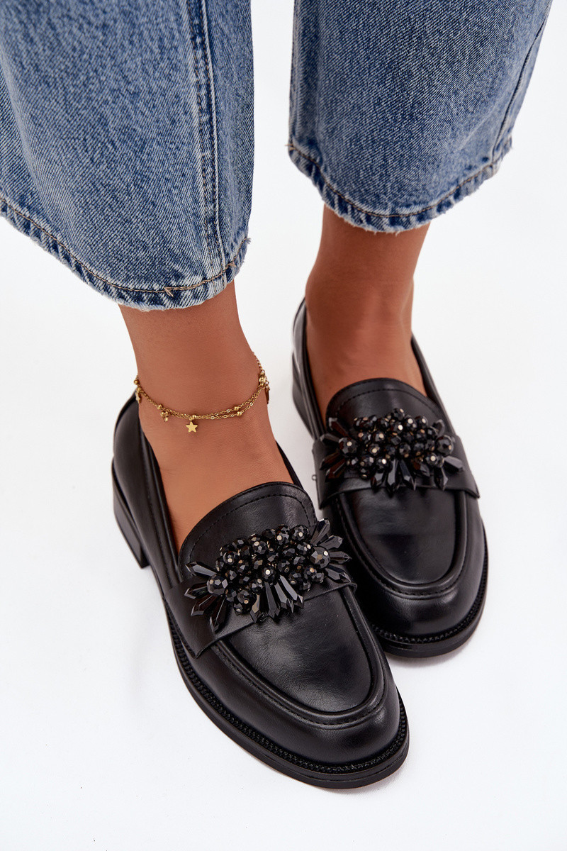 Zazoo 20164 mocassins femininos de couro natural, cor preta
