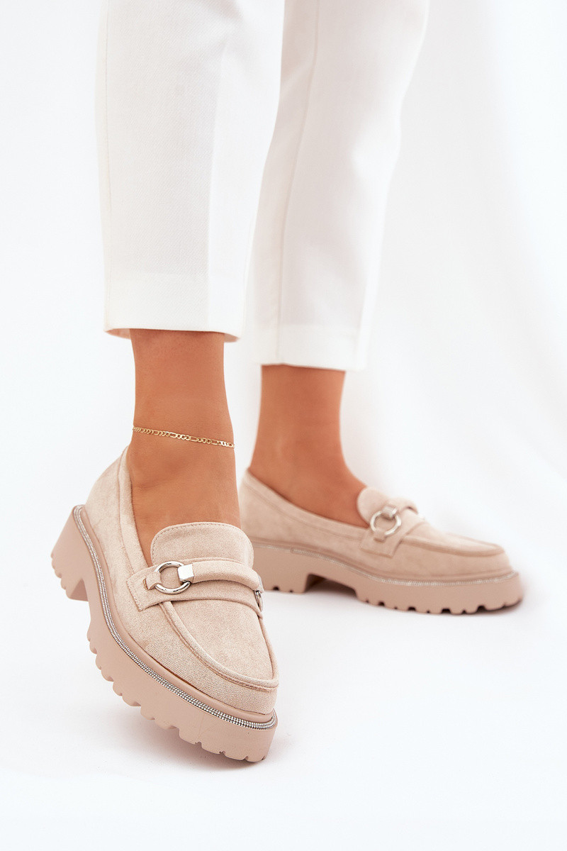 mocassins femininos Decorado Cyrkoniami bege Patina