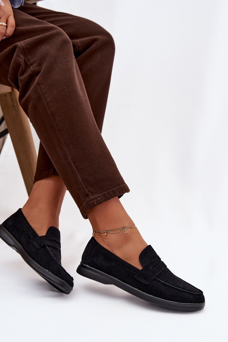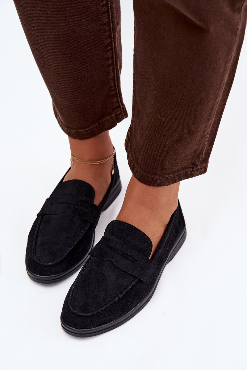 Mocassins femininos de camurça sintética, cor preta Renelia