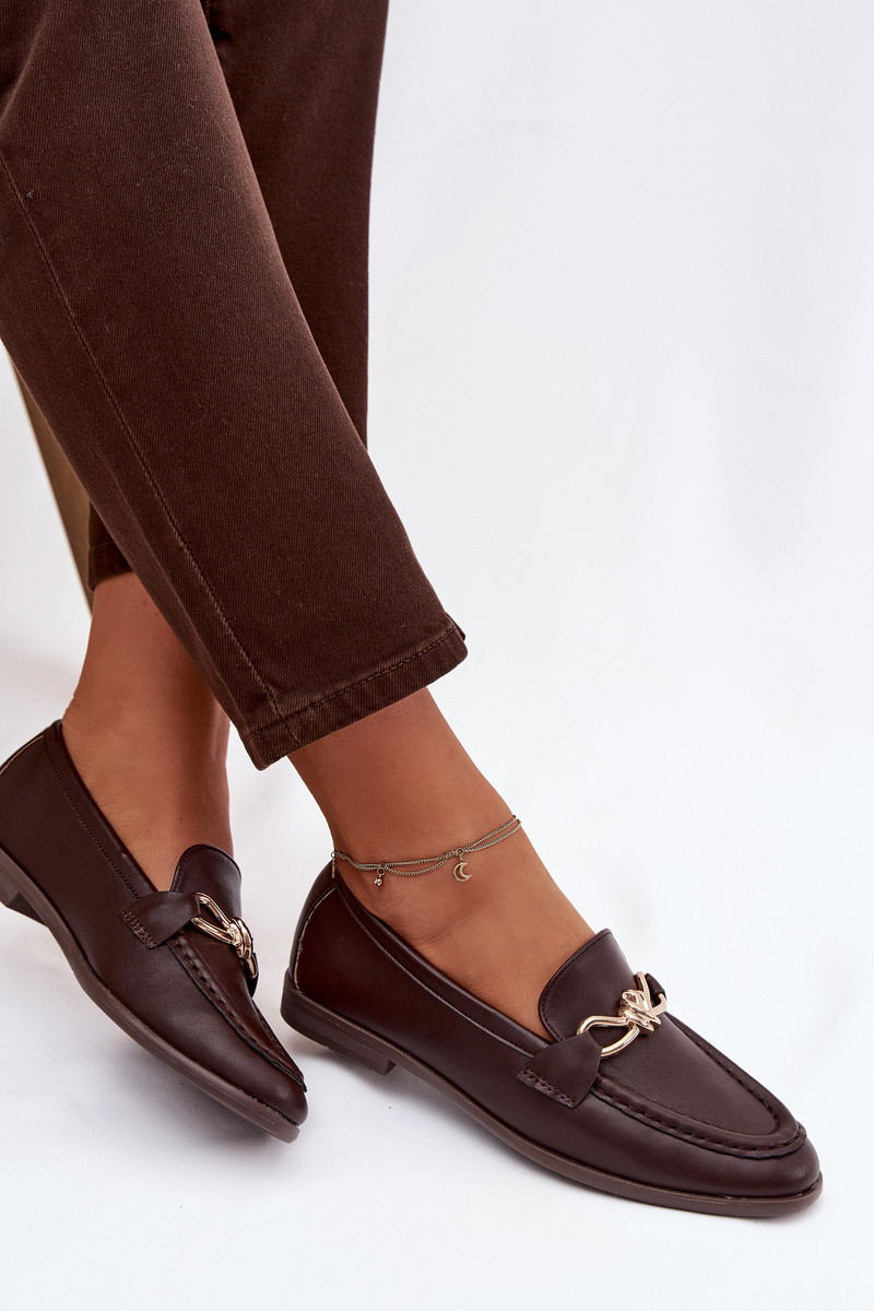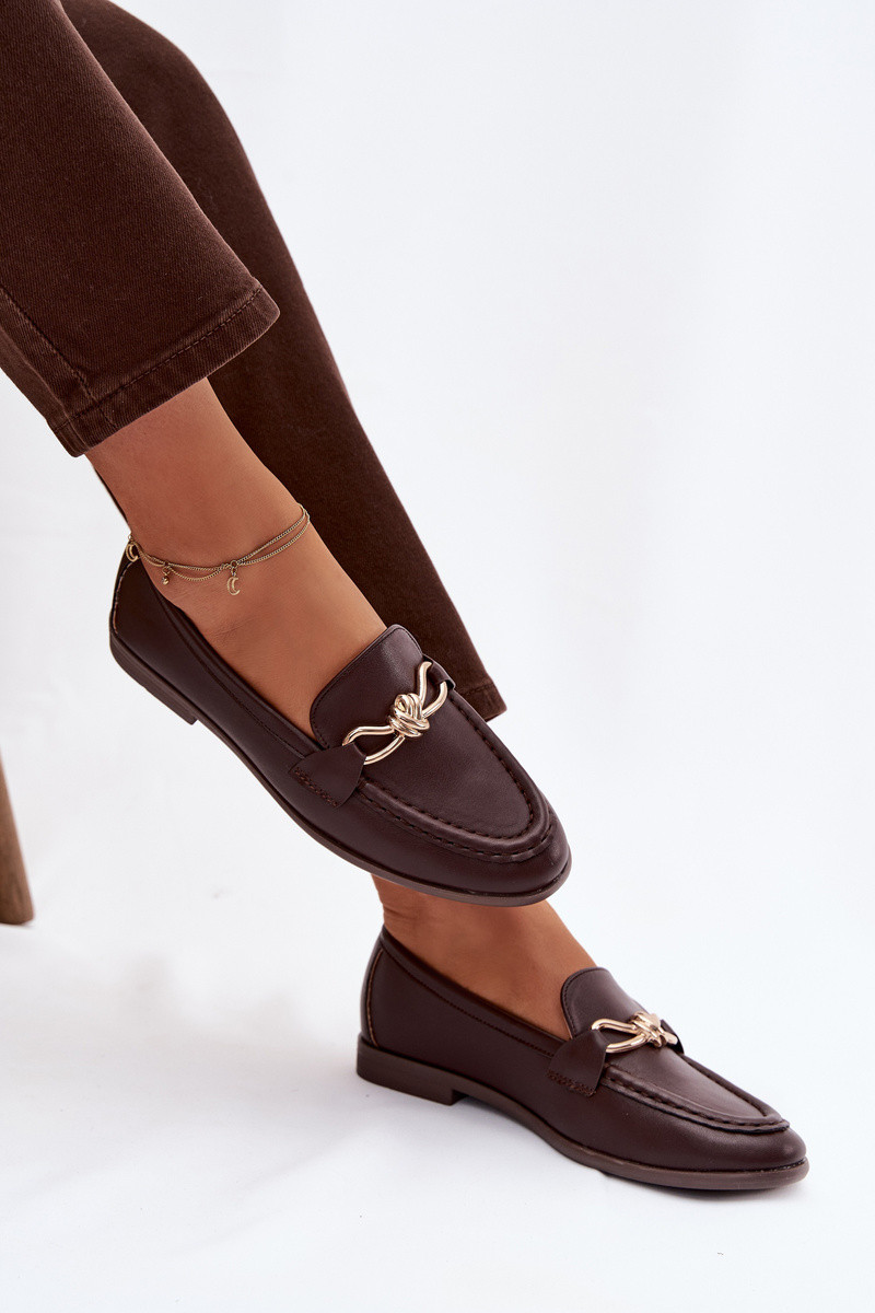 Mocassins femininos com detalhes decorativos, cor chocolate Rosynne