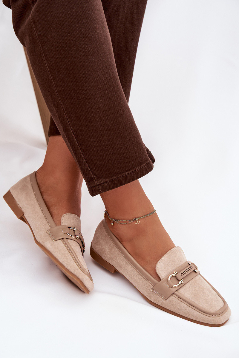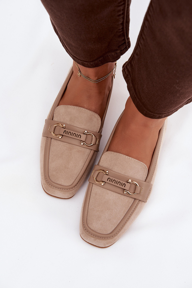 Mocassins bege femininos com elementos decorativos "Evelora"